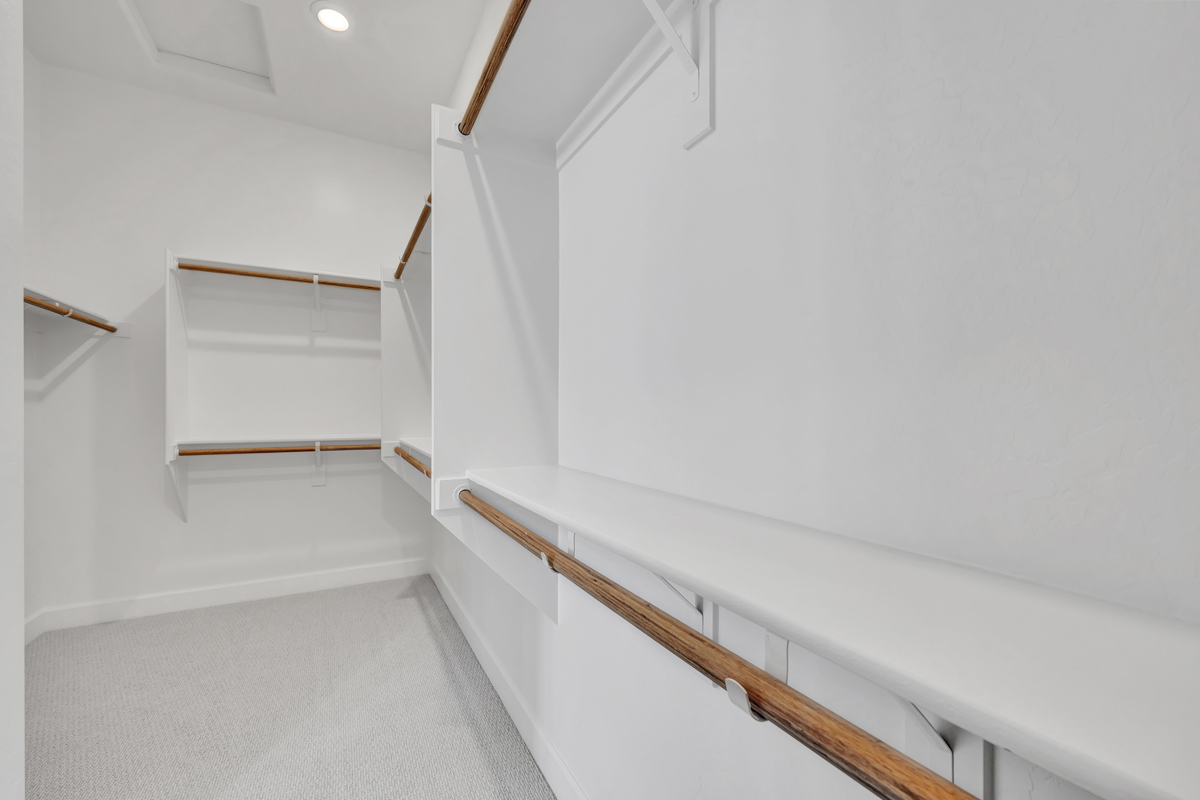 Wood-look tile flooring runs throughout the main living areas, combining the warmth of hardwood with the durability and easy maintenance of tile, while cozy carpet adds comfort in the bedrooms.