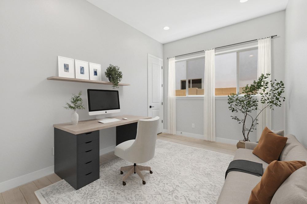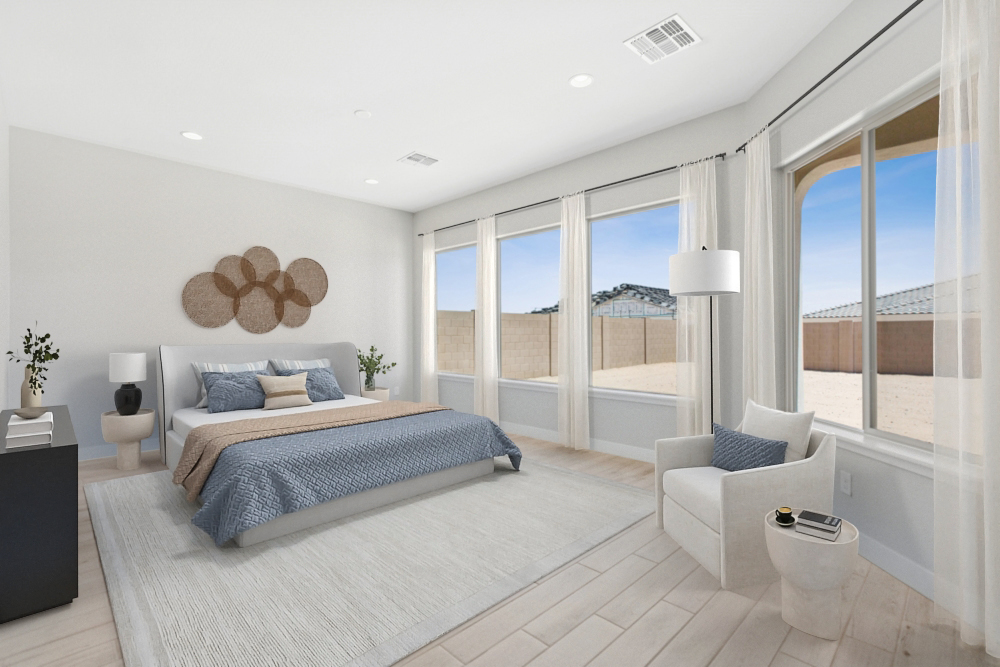 This lovely new home in Sentiero at Windrose draws you inside with its beautiful roof lines, soft color palette and modern Spanish exterior. Make coming home the best part of every day when you make this new home in Waddell, AZ, your own!