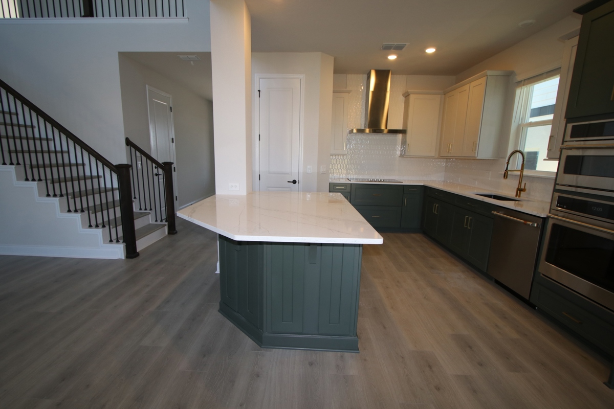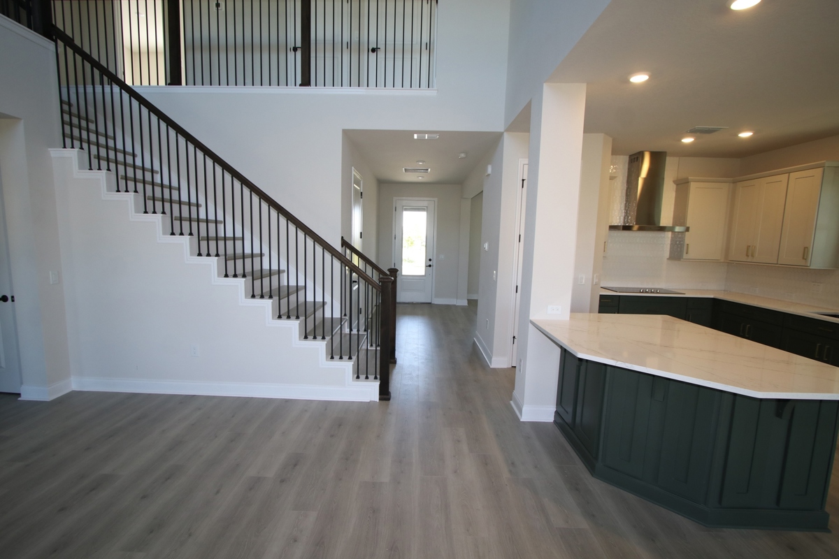 Striking architectural details such as stone accents and a paver driveway give the home an upscale, welcoming presence. Inside, you’ll find tall ceilings that open up the space, creating a bright, airy feel. Particularly, in the family room which boast A 20'FT plus ceiling height. The main floor features premium Mohawk Revwood waterproof laminate plank flooring, which is both stylish and durable. The home has a gourmet eat-in kitchen that flows seamlessly into the living area — perfect for entertaining and keeping family connected. Make your way up the stairs and peer down to the open to below concept that truly makes this home magical. The Owner’s Retreat is spacious, with room for a sitting area, a generous walk-in closet, and a luxurious ensuite: dual sinks with quartz countertops, spa like shower, and a separate water closet.