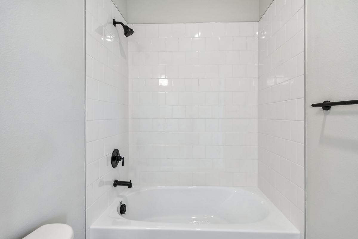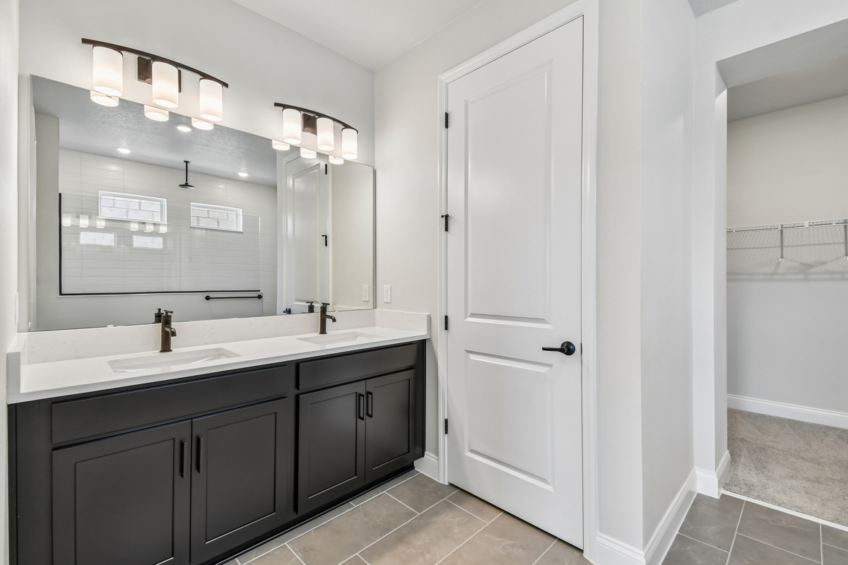 The gourmet kitchen is designed with the chef in mind and features a walk-in pantry, built-in microwave, convection oven, cooktop, and designer vent hood. A 9-foot island provides space for casual dining or homework, while 42-inch white perimeter cabinets, a black accent island, and bright quartz countertops complete the designer finishes.