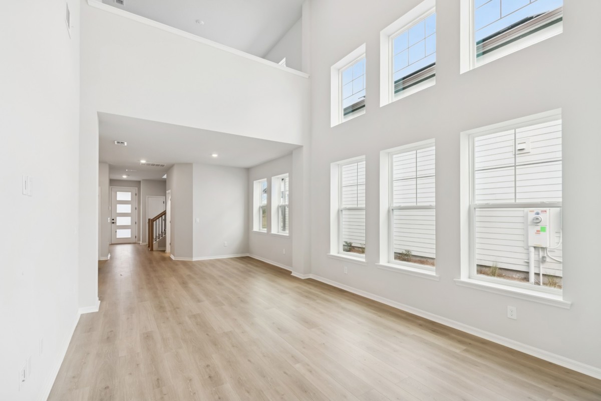 The open-concept gathering spaces fill with cool sunlight from energy-efficient windows and easily adapt to your personal design style. The streamlined kitchen features a presentation island and plenty of room for collaborative feast creation.