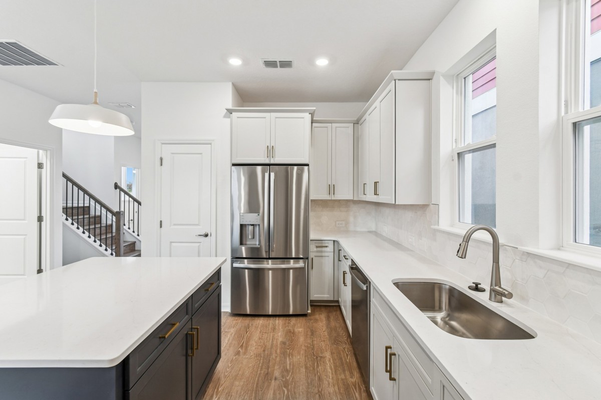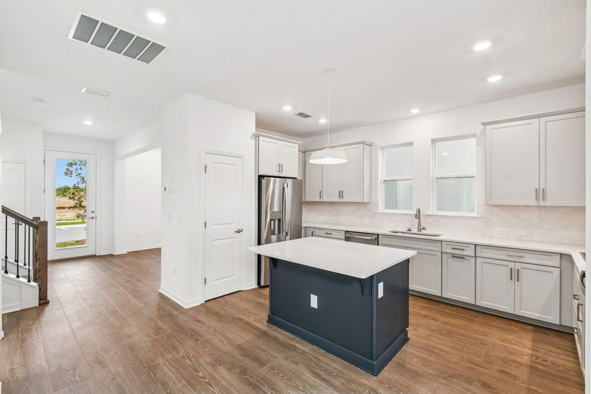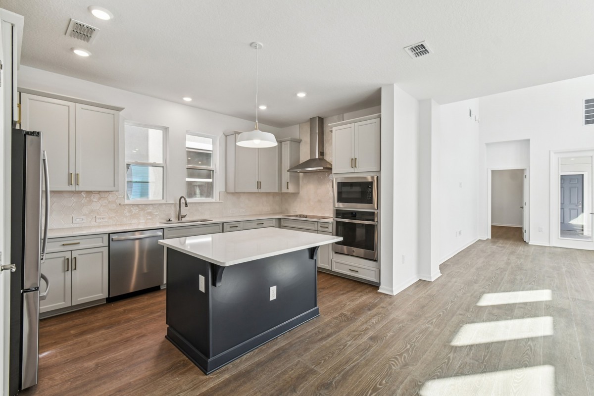 The open-concept gathering spaces fill with cool sunlight from energy-efficient windows and easily adapt to your personal design style. The streamlined kitchen features a presentation island and plenty of room for collaborative feast creation.