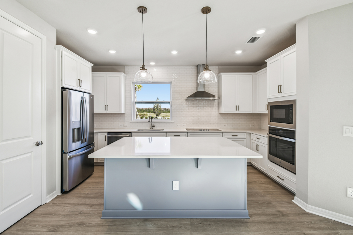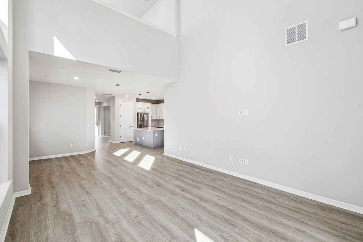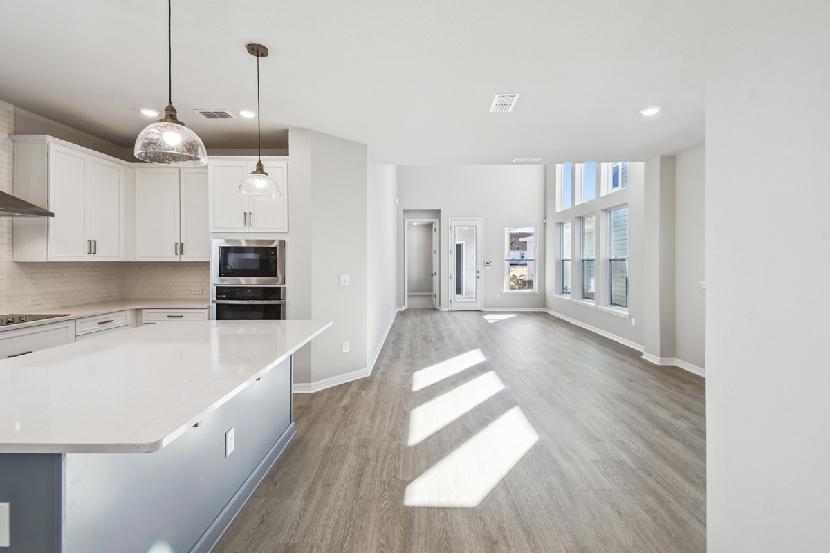Fulfill your lifestyle dreams in the vibrant and innovative Zeppelin new home plan. A tasteful kitchen rests at the heart of this home, balancing impressive style with easy function, all while maintaining an open design that flows throughout the main level. Your open-concept living spaces present an distinguished first impression from the front door and offer superb comforts for quiet evenings together. The covered front porch, open study, and lanai provide extraordinary places to welcome guests, relax, and achieve your hosting and productivity goals. Your Owner’s Retreat includes a sleek en suite bathroom and a walk-in closet to make it easy to rest and refresh in luxury. Two junior bedrooms are situated on the second floor, presenting ample privacy for growing residents. Come together for movies and games in the upstairs retreat, which is open to the family room thanks to a soaring ceiling that spans both levels. Get the most out of each day with the EnergySaver™ innovations that enhance the design of this incredible new home plan.