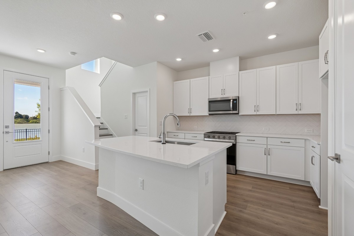 The Waterway by David Weekley Homes offers relaxed, low-maintenance living in one of the most scenic locations in Emerald Landing at Waterside in Lakewood Ranch, located in Sarasota, FL. This two-story town home is set along Spoonbill Lake, with the front of the home facing the water and the rear-load, extra-wide two-car garage facing toward Deer Drive.