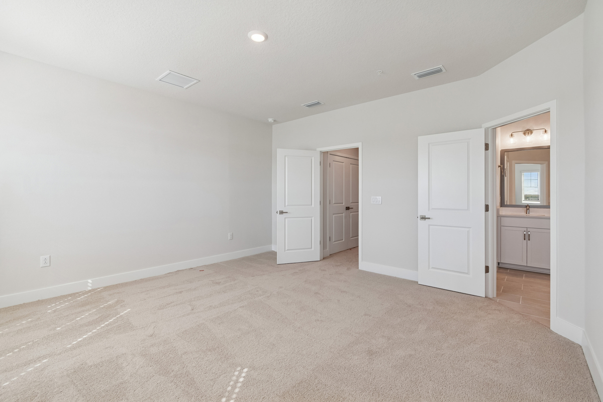 Upstairs, the private owner’s retreat offers a spa-like bath with a full-tile super shower, dual quartz vanities, and a walk-in closet. Two additional bedrooms, a versatile loft, and an upstairs laundry add flexibility and comfort. All windows are impact-rated, the home is located in a natural gas community, and the garage includes a finished epoxy floor. Premium finishes for flooring and tile baths providing durability and peace of mind.