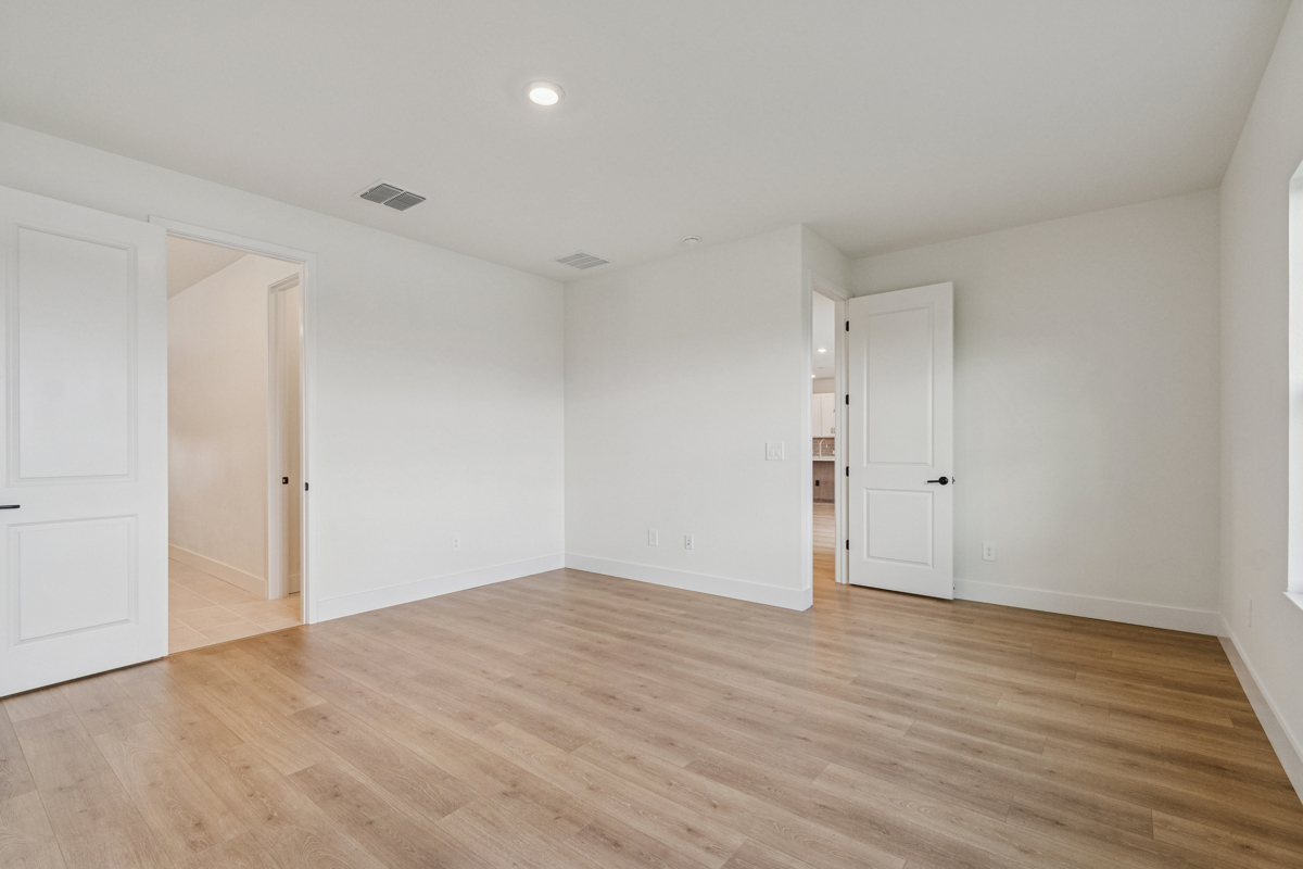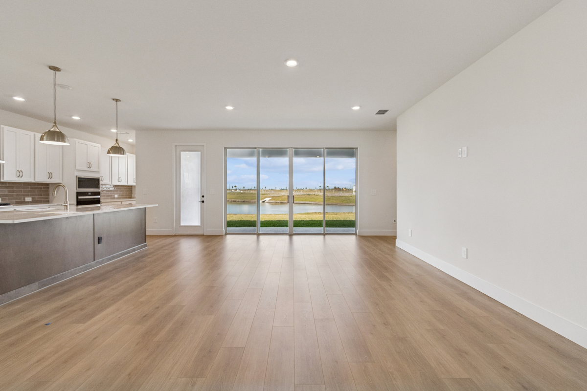Inside, the home includes a private office for quiet productivity and a dedicated TV room—ideal for cozy movie nights or entertaining on game day. The Owner’s Retreat is tucked at the rear of the home, providing peaceful views of the backyard pond and a spa-like bath complete with an upgraded super shower.