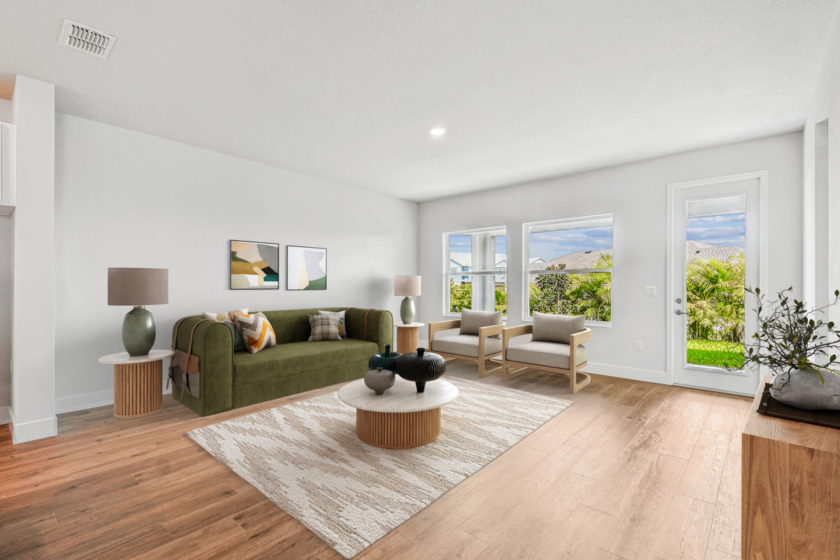 Exceptional craftsmanship combines with genuine comforts in The Sanborn floor plan by David Weekley Homes in North River Ranch. In the beautiful family and dining spaces, hosting holiday gatherings and relaxing into quiet evenings will both be a breeze.
