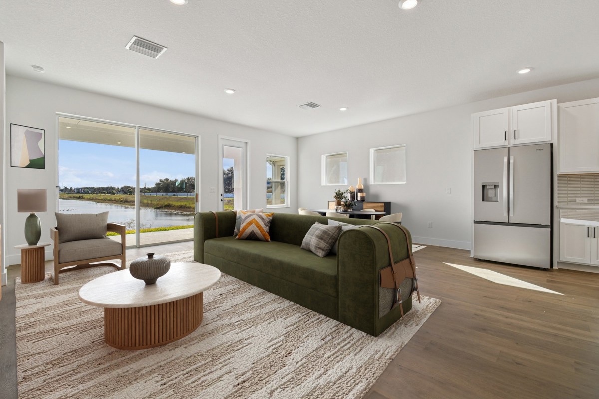 ample space for family and guests. The luxurious owners retreat is complete with a spa-like en-suite bathroom and an oversized walk-in closet. A two-car garage offers convenience and storage. WE look forward to meeting you and making Rhodine Lake your new home.