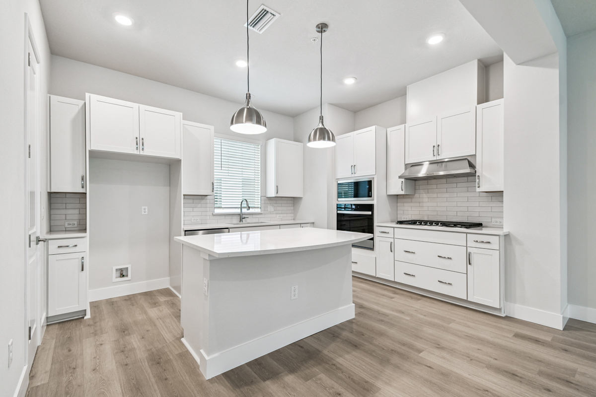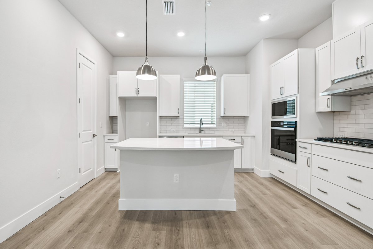 This light-filled home blends style and function with an airy open layout, gourmet kitchen center island, gas cooktop, stylish venthood, wall oven/microwave combo, and walk-in pantry. The Owner’s Suite offers a spa-inspired bath and walk-in closet, while two private guest suites each have their own full bath.