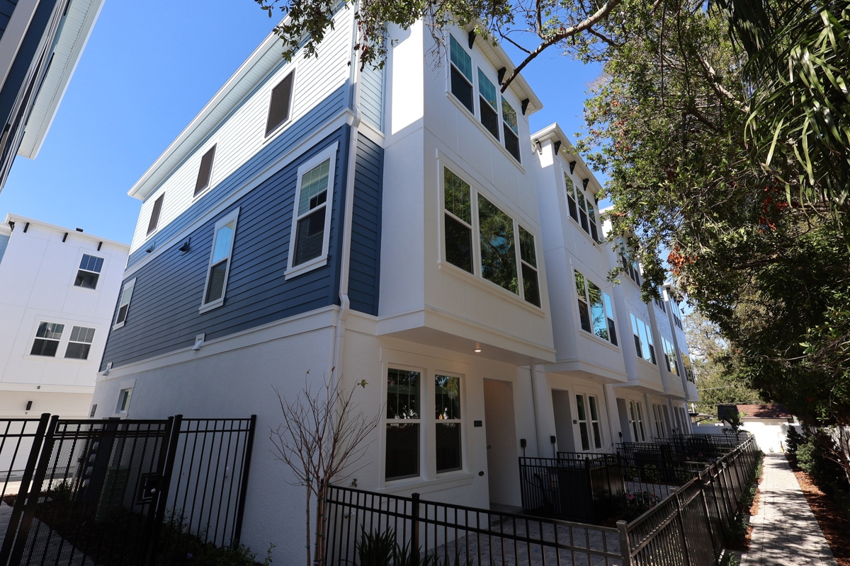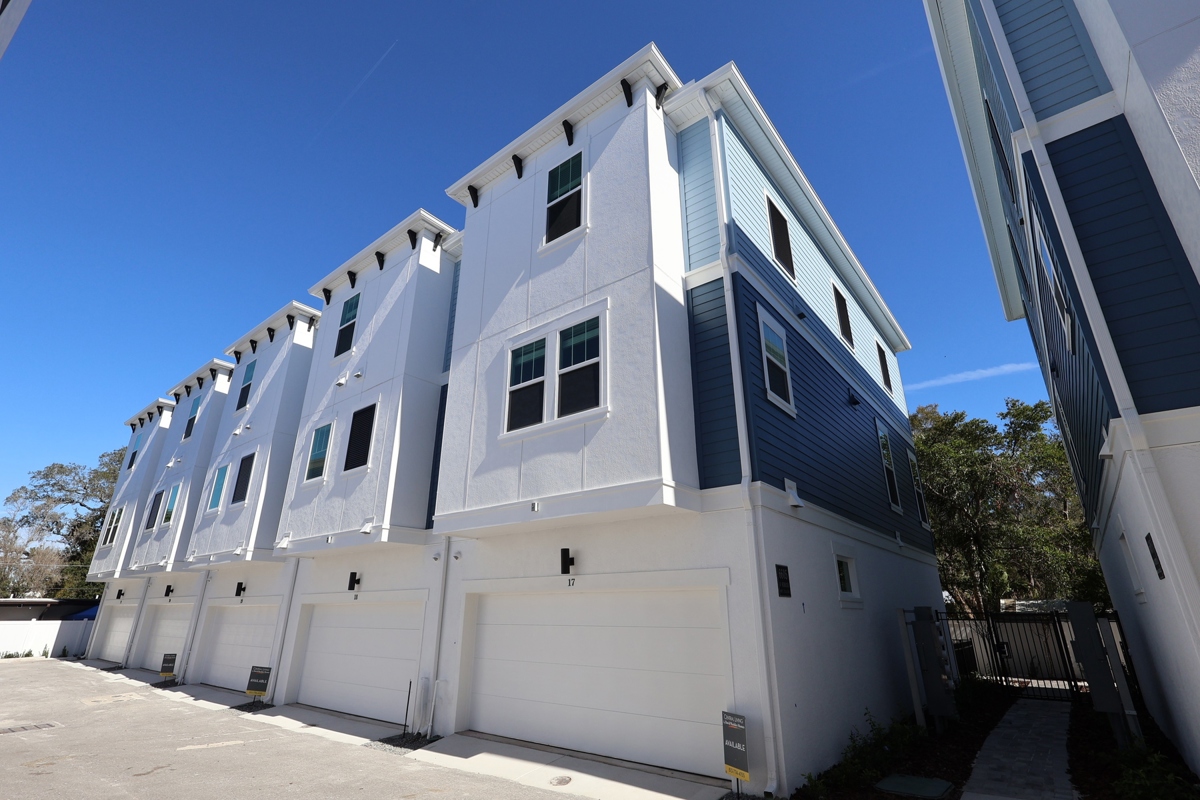 Welcome to Apex at Seminole Heights! This newly built community by David Weekley is just ten minutes from Downtown Tampa, USF, and the University of Tampa. These townhomes offer excellent value for living in Seminole Heights, close to local restaurants, shops, and events. The location is ideal for busy professionals needing quick access to Tampa's convenient lifestyle. The spacious Owner's Retreat provides the comfort of a cozy bedroom and the efficiency of a well-designed space. The en-suite bathroom features a double sink vanity and a walk-in closet, making mornings easier. This end unit has energy-efficient, hurricane-impact windows that bring in extra natural light, while soaring ceilings enhance the open design and spacious feeling throughout the home. It faces a gated community walkway, offering a quiet, private entrance off a fenced courtyard. Schedule your appointment today to see all that this new Tampa community has to offer!