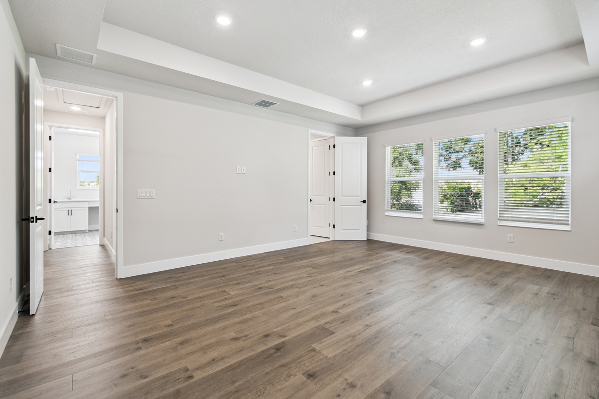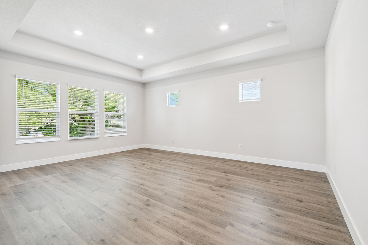 Upstairs, natural wood-look laminate flooring enhances the spacious bonus room and luxurious Owner’s Retreat. The primary suite provides the perfect place to unwind, featuring a spa-style Super Shower with a frameless glass enclosure and a walk-in closet that impresses. Three generously sized secondary bedrooms and two additional full baths ensure plenty of space and privacy for family or guests.