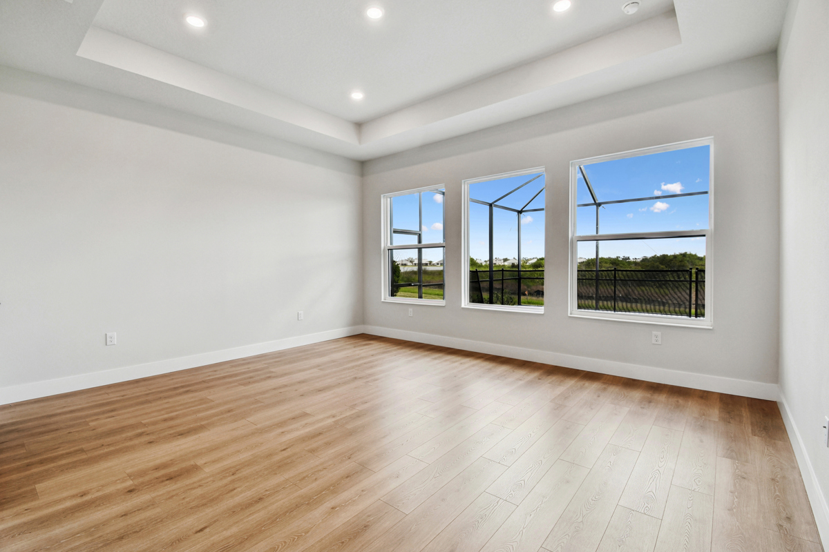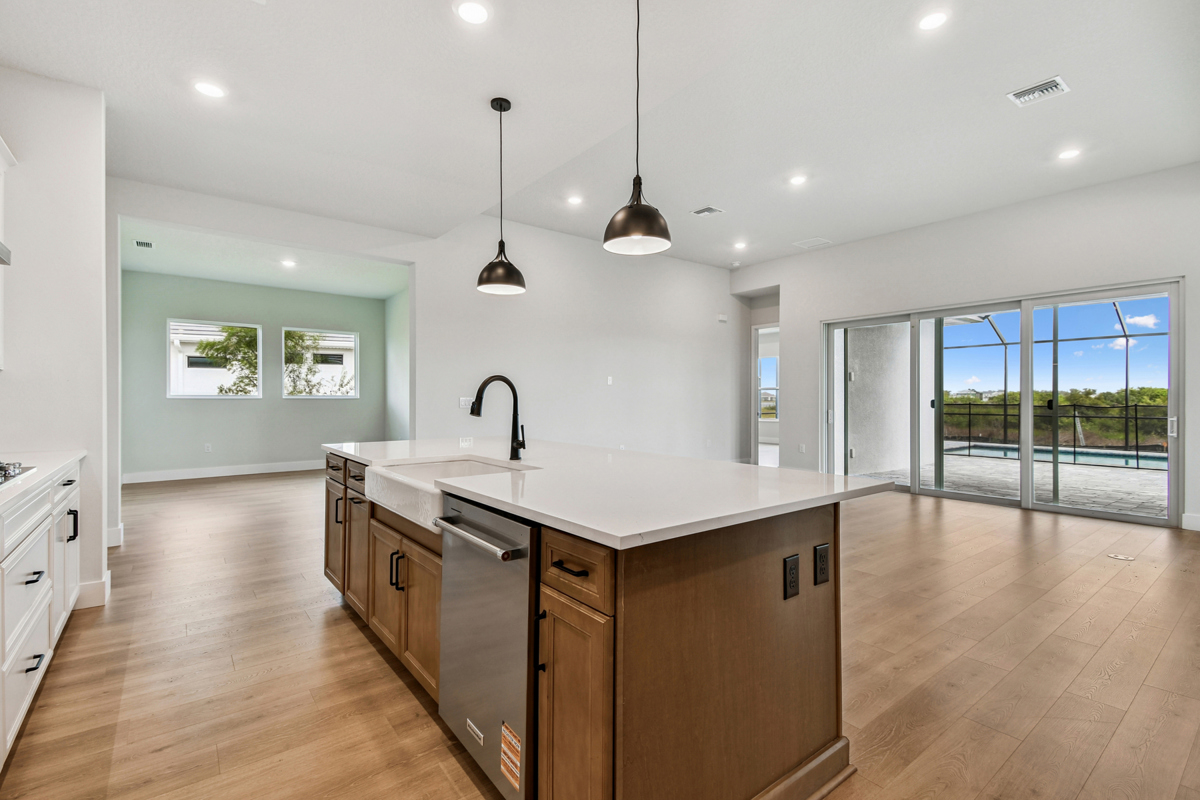 The open kitchen rests at the heart of this home with open Sight Lines extending through the sunny family room, dining spaces and out onto the backyard lanai. Unwind on the spacious covered lanai and take a dip in your private, refreshing pool, overlooking sweeping views of the conservation landscape.