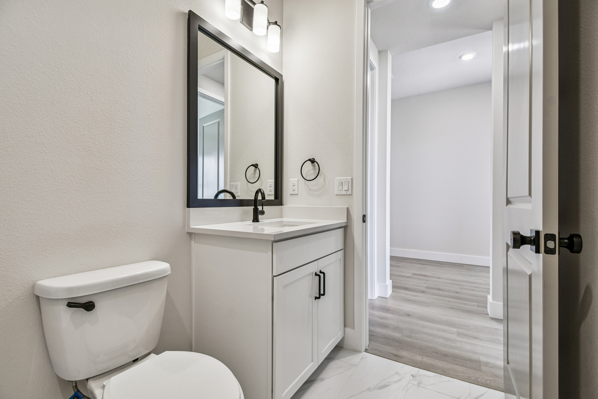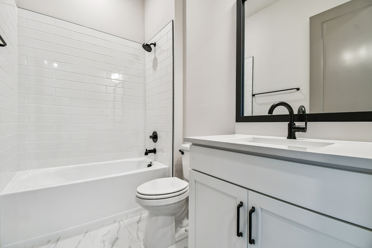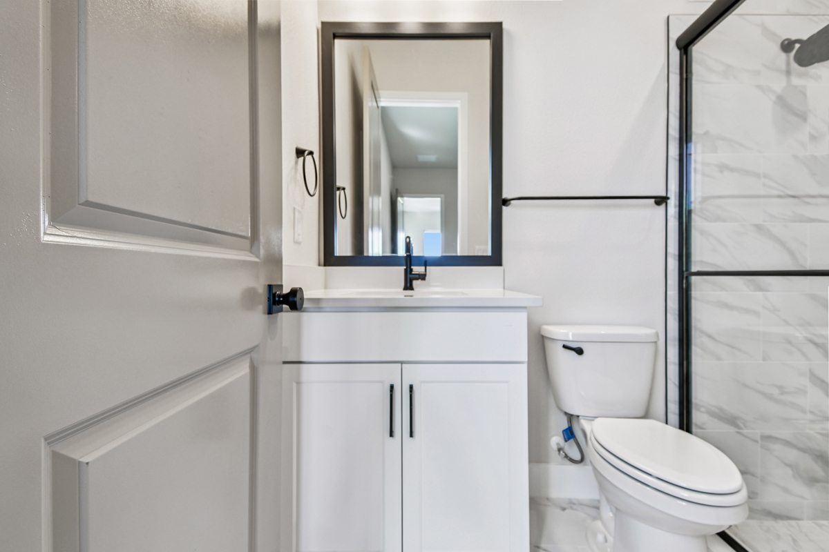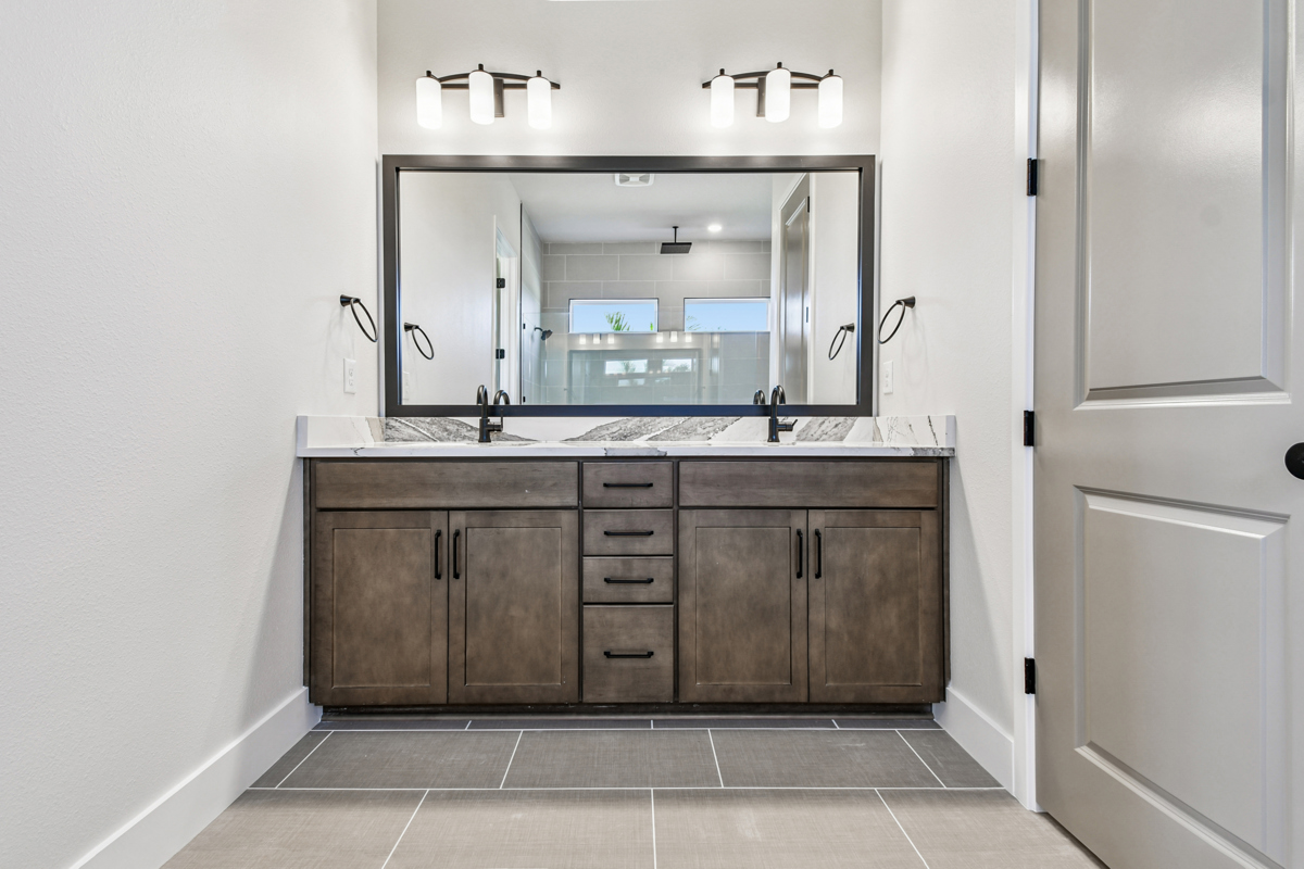 Guests will appreciate the privacy of their own suite with a dedicated bathroom, located just off the kitchen. Across from the expansive three-car garage, two additional bedrooms share a stylish bathroom. Retreat to the peaceful owner's suite, complete with a luxurious bathroom and a spacious walk-in closet.