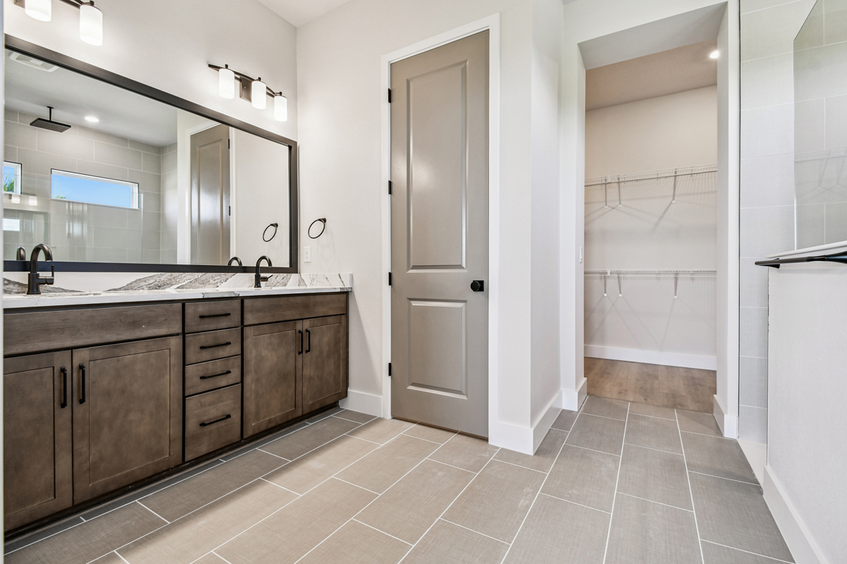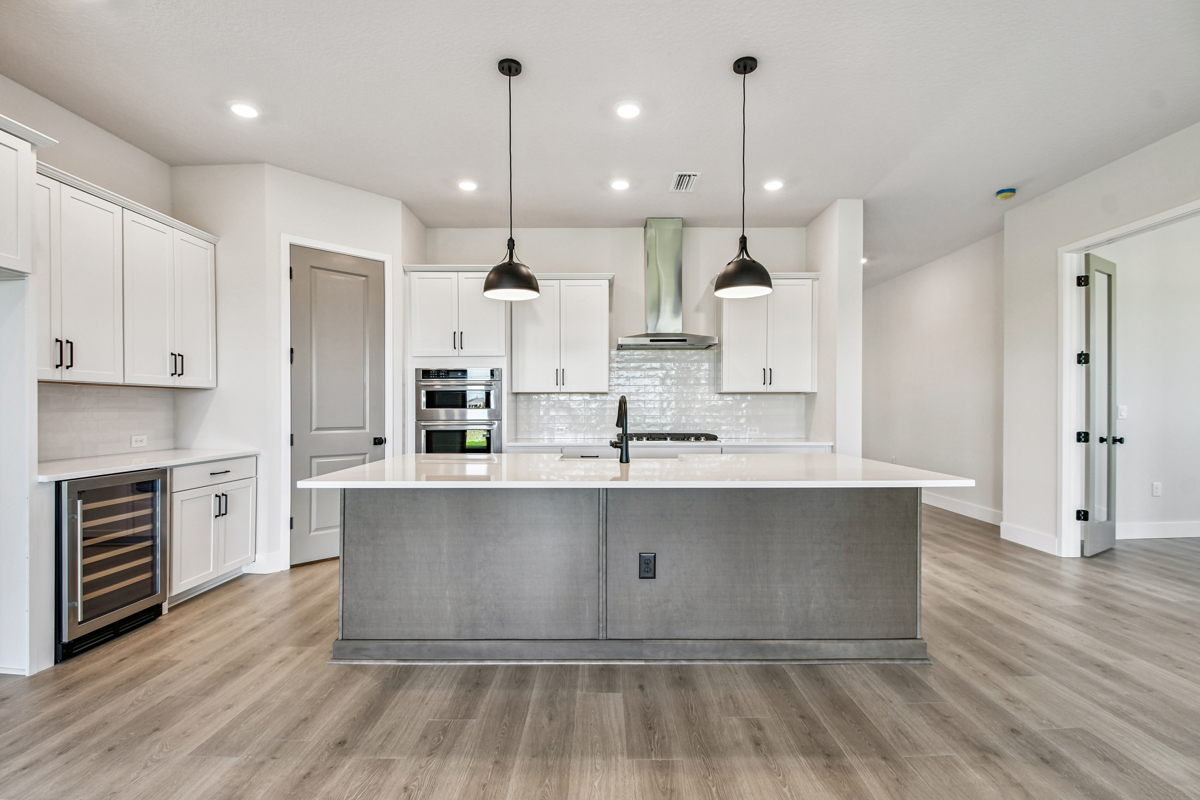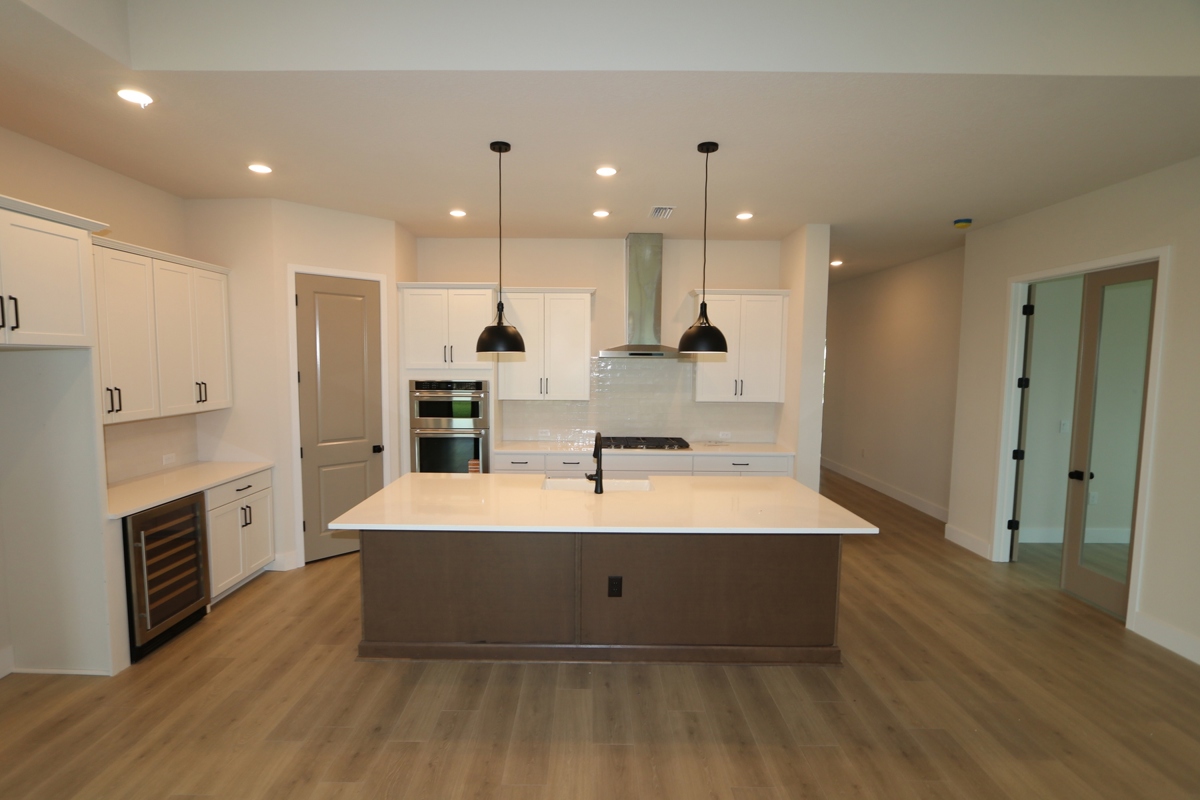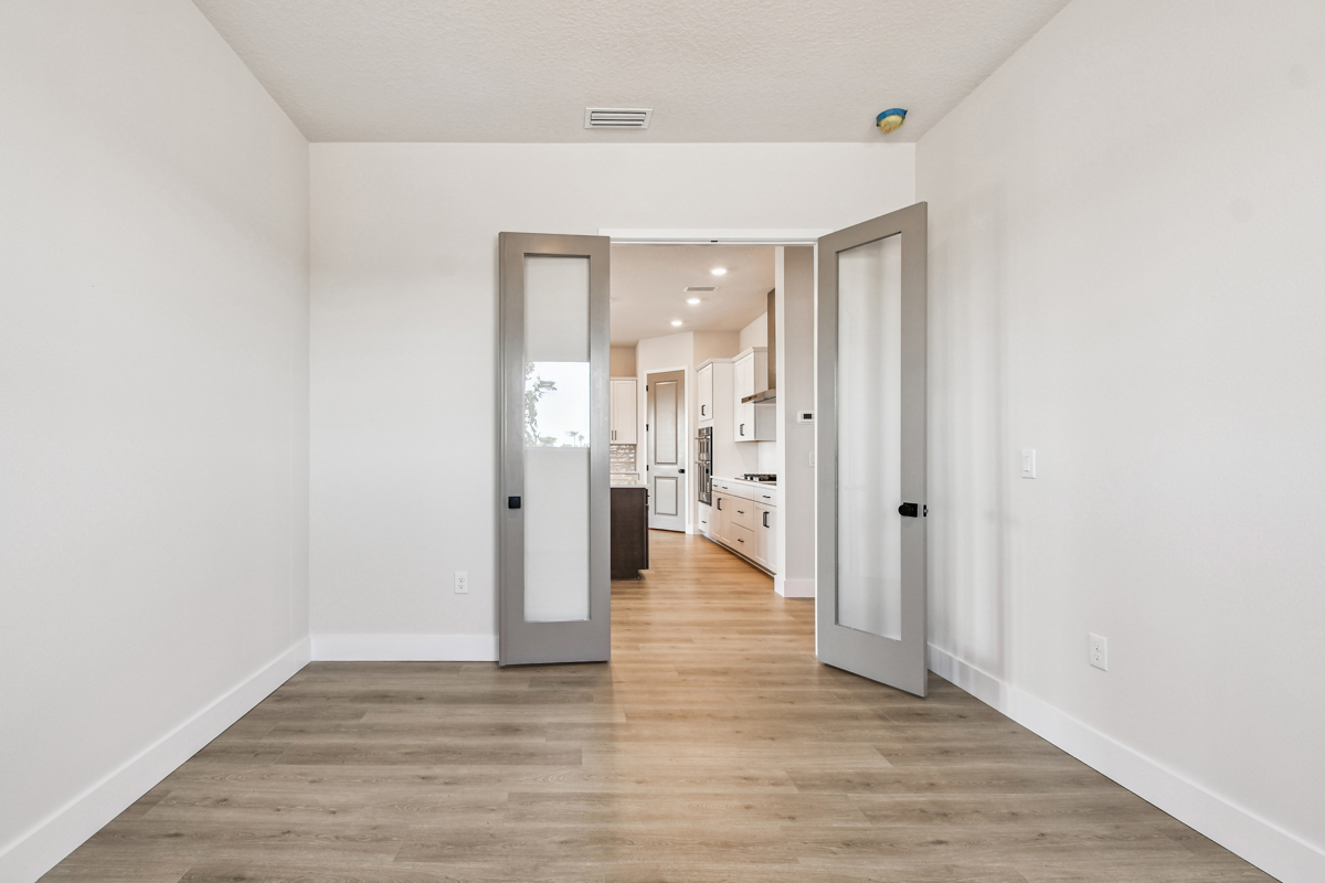 Adjacent to the kitchen, a versatile study offers endless possibilities, from a productive home office to a playful playroom or an elegant dining room. The warm, neutral hues of the homes finishes perfectly capture the essence of a beautiful French countryside chateau, embodying the French Country style.