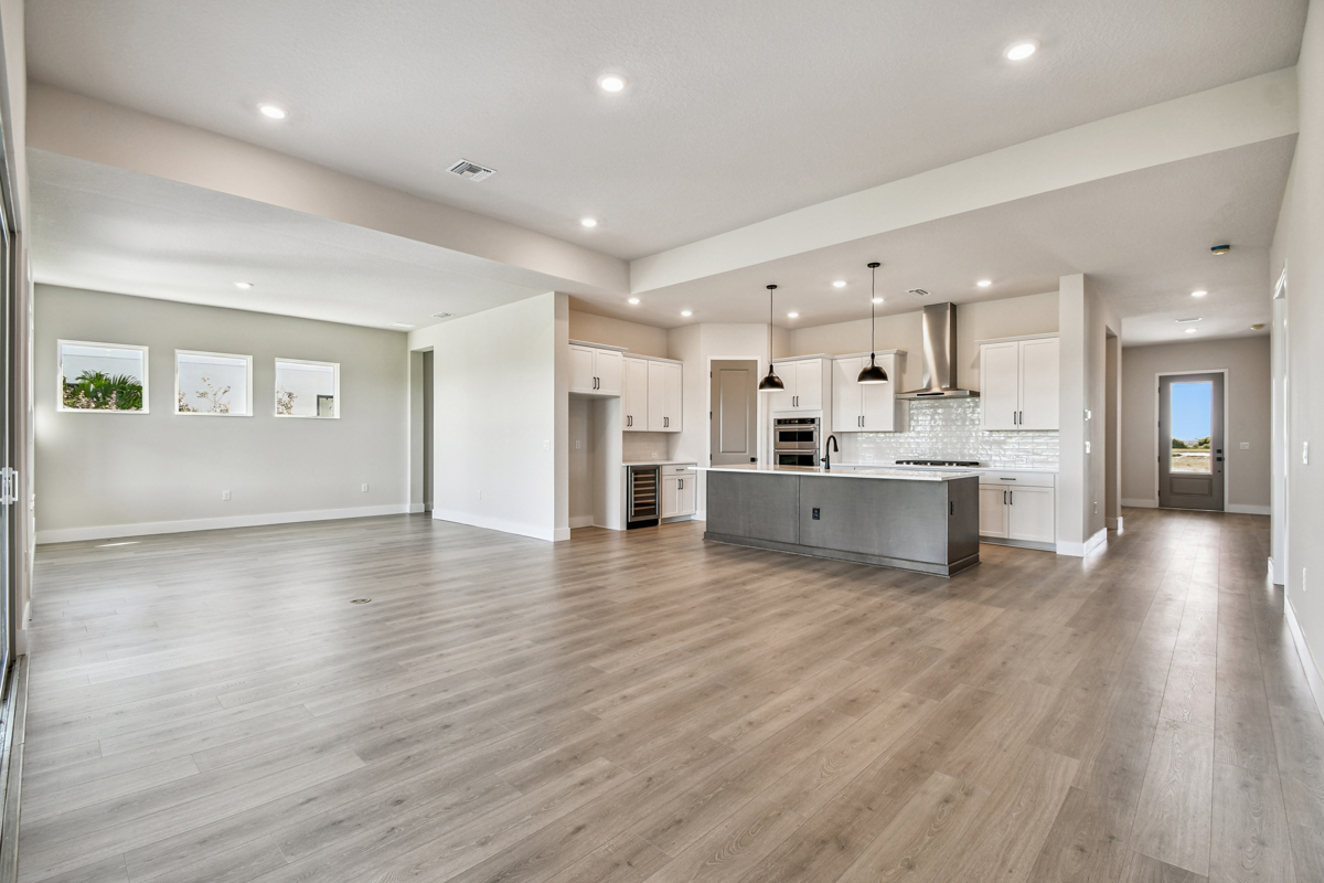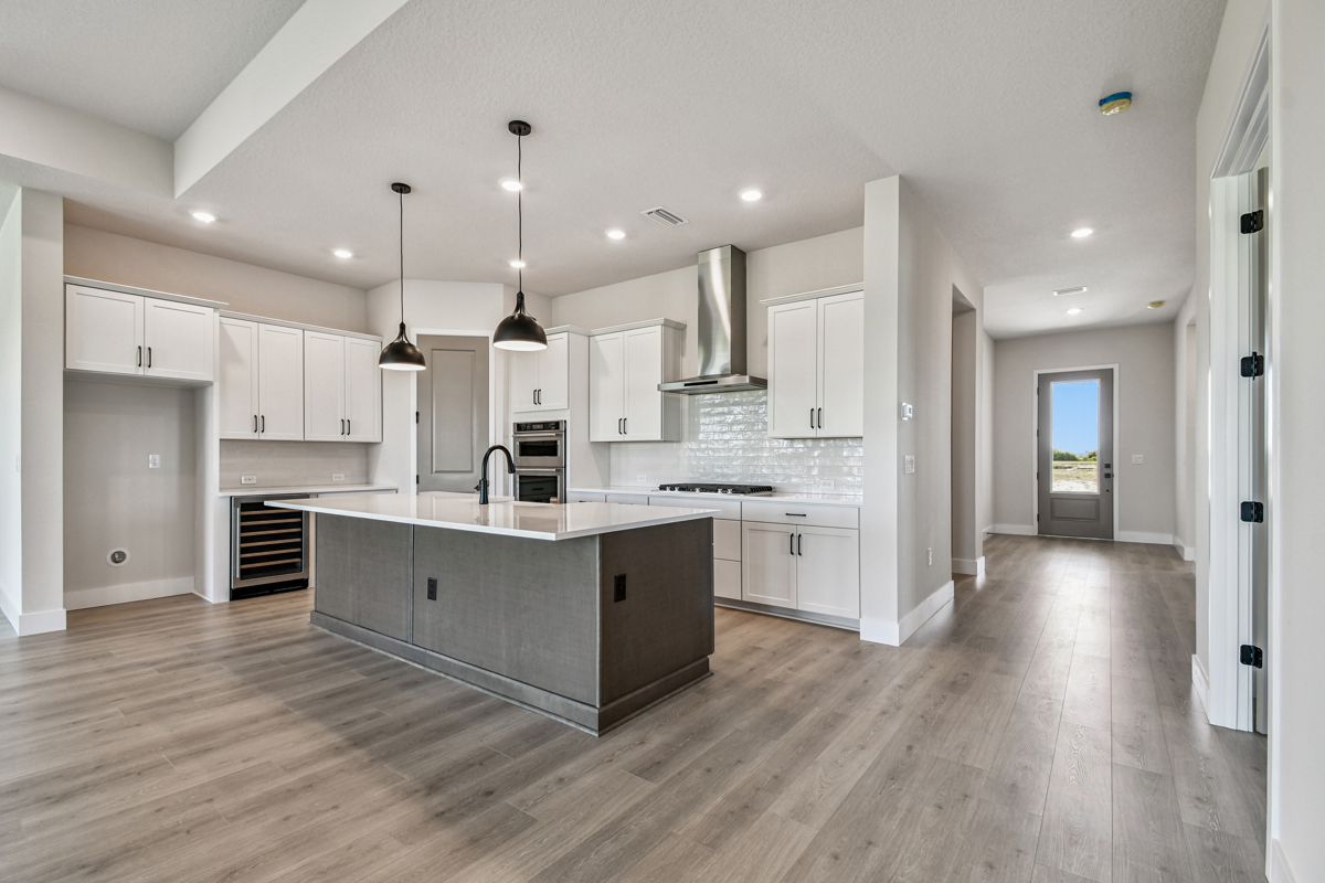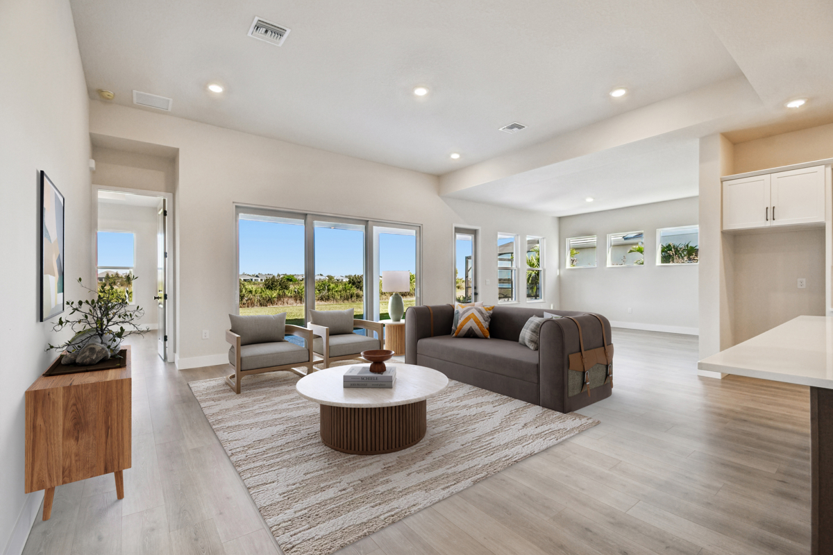 Imagine a life of effortless comfort and elegant design in The Borrelli by David Weekley Homes, situated in Palmera Wellen Park. This welcoming home features an open-concept kitchen at its heart, connecting seamlessly to sun-drenched family and dining areas that spill out to the backyard and lanai – your perfect setting for indoor and outdoor enjoyment.