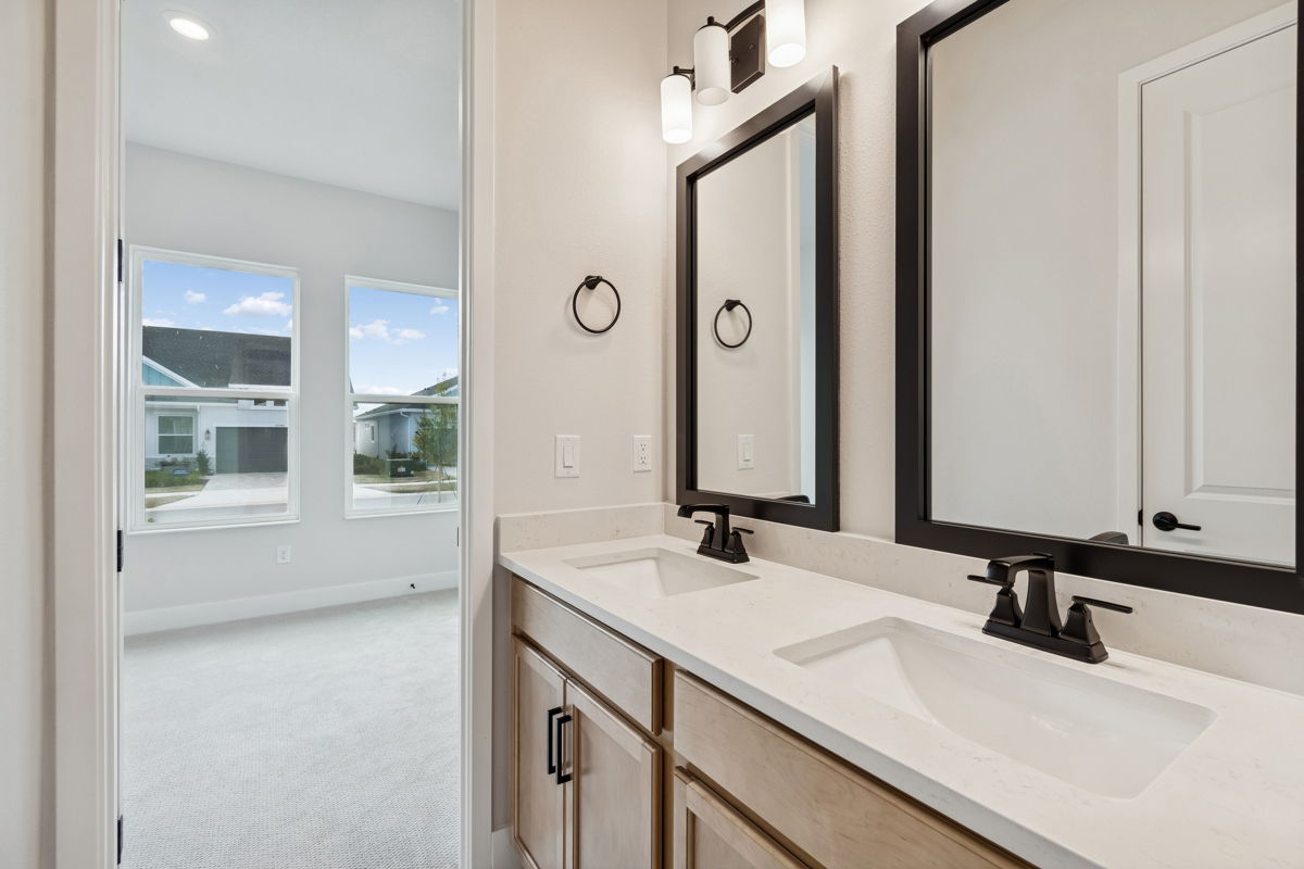 The private Owner’s Retreat is a luxurious haven with a spa-inspired Owner’s Bath featuring a soaking tub, walk-in shower, and a large walk-in closet. Three secondary bedrooms are thoughtfully situated to provide privacy and comfort for family or guests. With David Weekley’s industry-leading warranty, you’ll enjoy lasting peace of mind and the highest standards of craftsmanship.