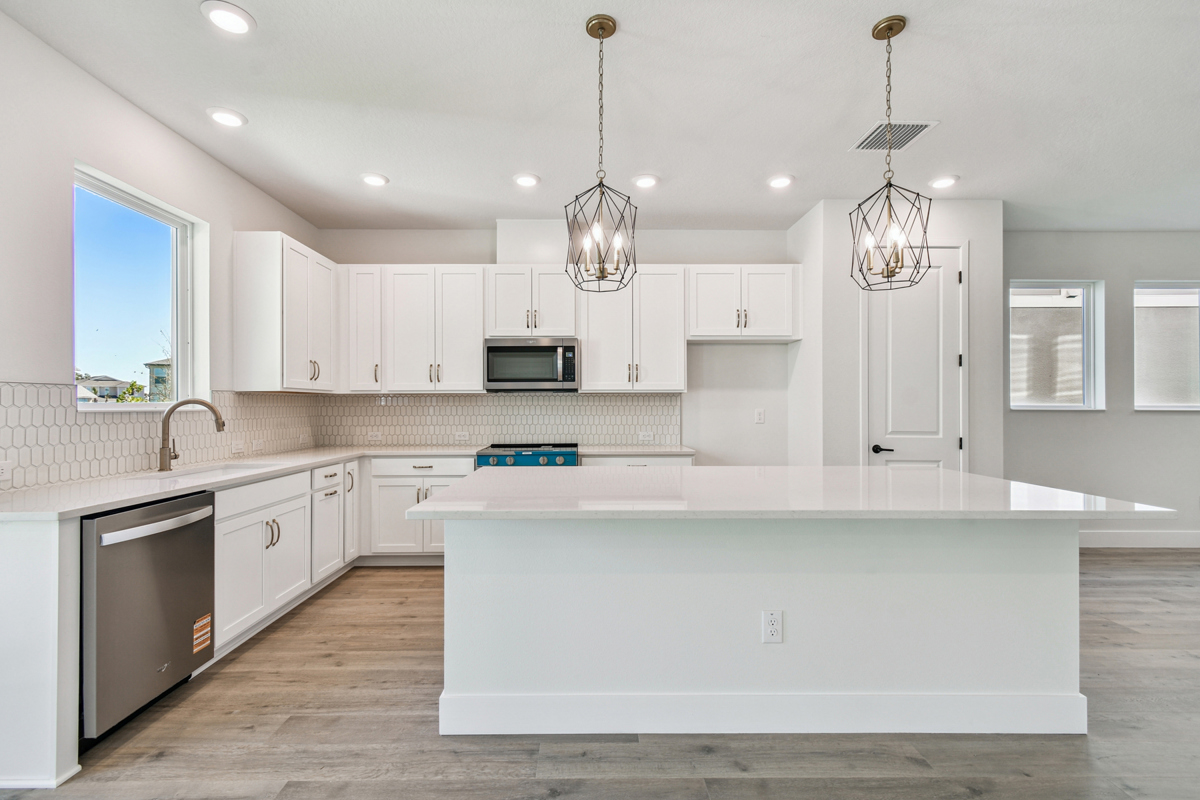 At the heart of the home, the kitchen showcases custom white shaker-style cabinetry, quartz countertops and an expansive island, perfect for easy meal prep and entertaining family and friends.