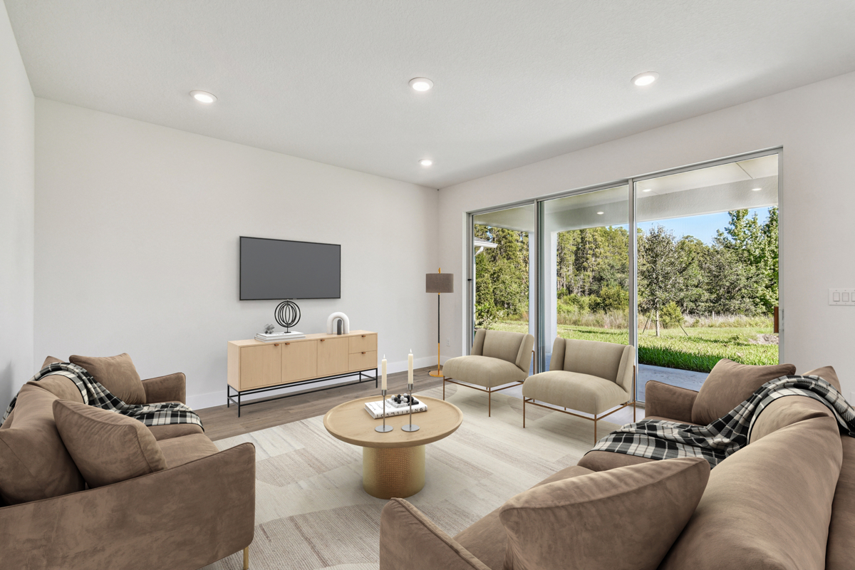 Step through your sliding glass doors onto a spacious lanai and take in the serene beauty of a conservation homesite.