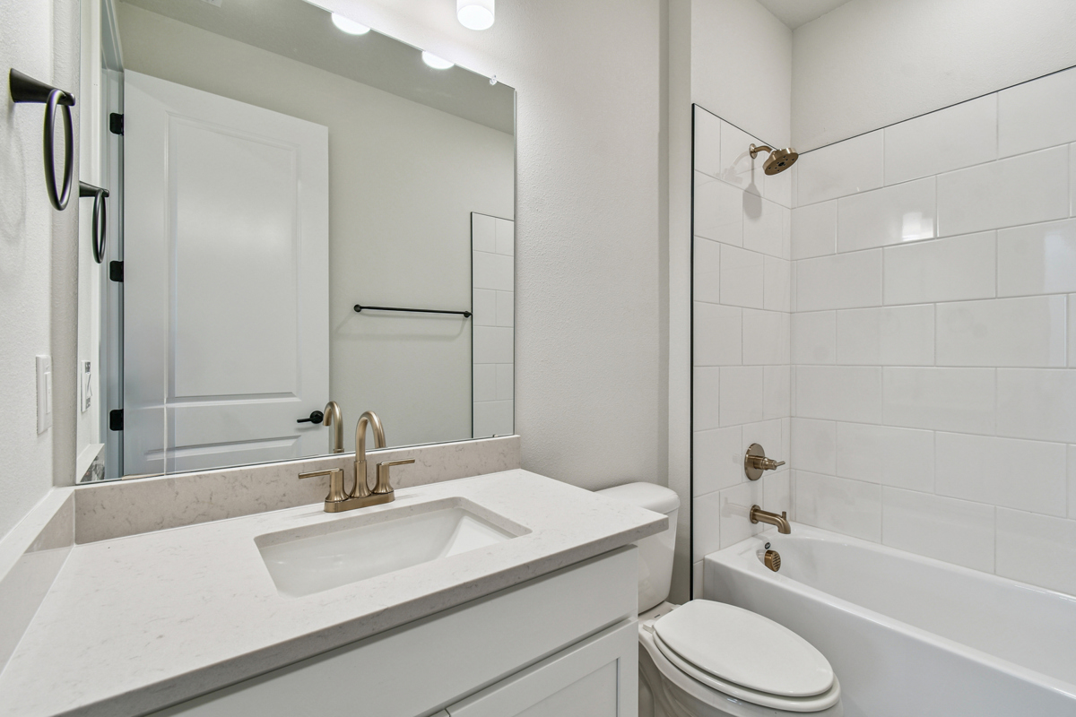 This quick move-in home features five bedrooms, three bathrooms and a two-car garage, all styled with a balanced blend of warm and cool tones.