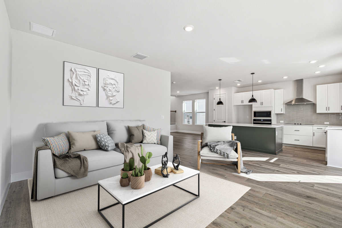 This beautifully designed four-bedroom, two-and-a-half-bathroom David Weekley home blends modern elegance with energy-efficient living in a flexible, open-concept layout.