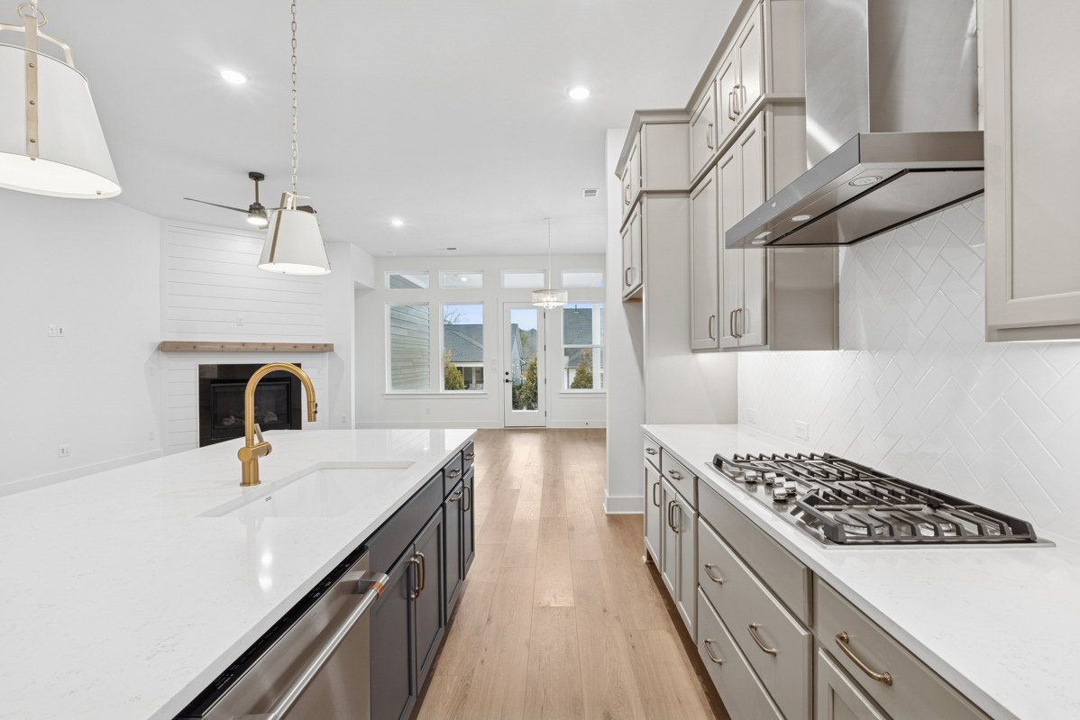 The elegant gourmet kitchen features quartz countertops, a large center island, and ample prep space, seamlessly connecting to the dining and family rooms. A cozy gas fireplace adds warmth to the family room, while sliding doors open to a covered rear patio overlooking a large backyard—an ideal setting for relaxation or hosting guests.