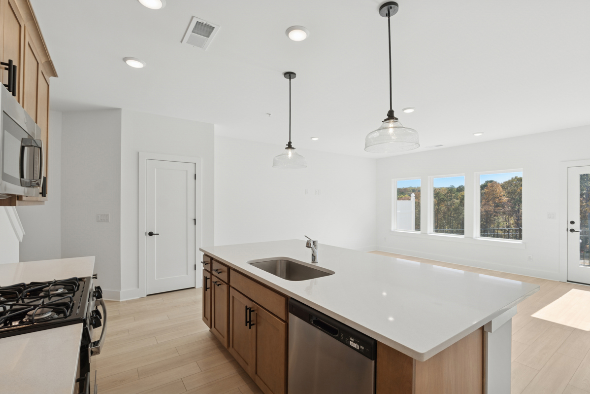 Introducing Grandview Terrace, a gated townhome community by David Weekley Homes in Canton, GA. The open-concept Woodstone II is an end unit featuring 3 bedrooms and 2.5 baths, with a bright main level that includes windows in the dining area, upstairs hallway, and Owner's retreat. The smart kitchen design opens to the Great Room with options for both dining and family living.