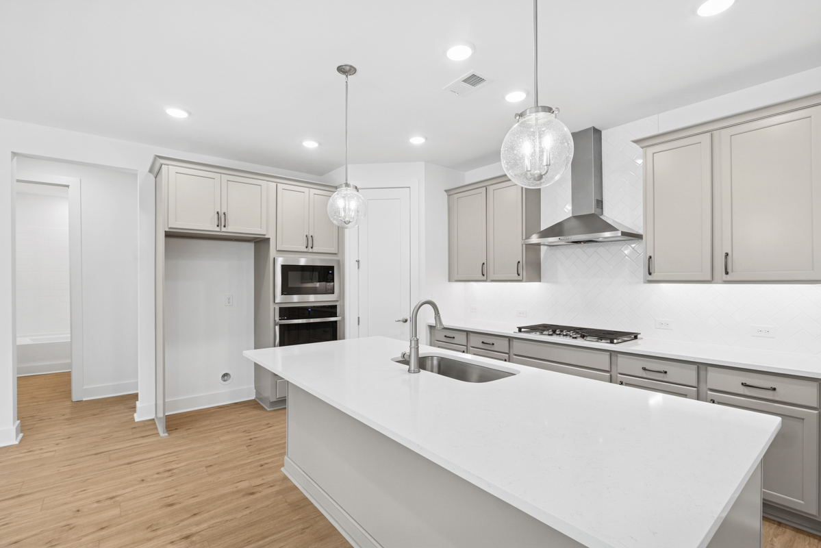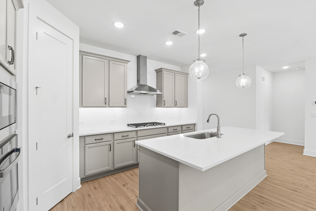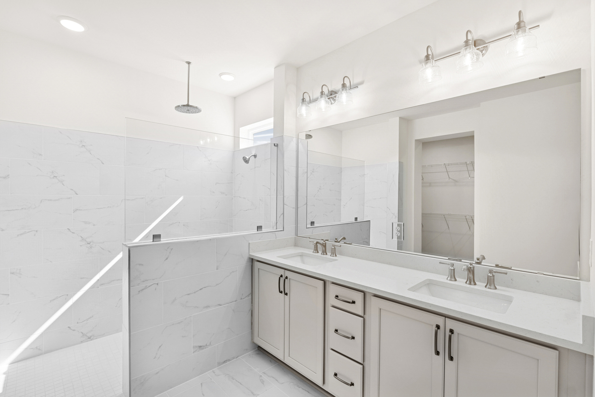 At day’s end, the Owner’s Suite provides a restful escape. The spa-inspired bathroom features a Super Shower with a rainfall head, coordinating Miami Oro quartz counters, and sleek brushed nickel fixtures for a look that is serene and polished. Every detail is designed to restore and rejuvenate.