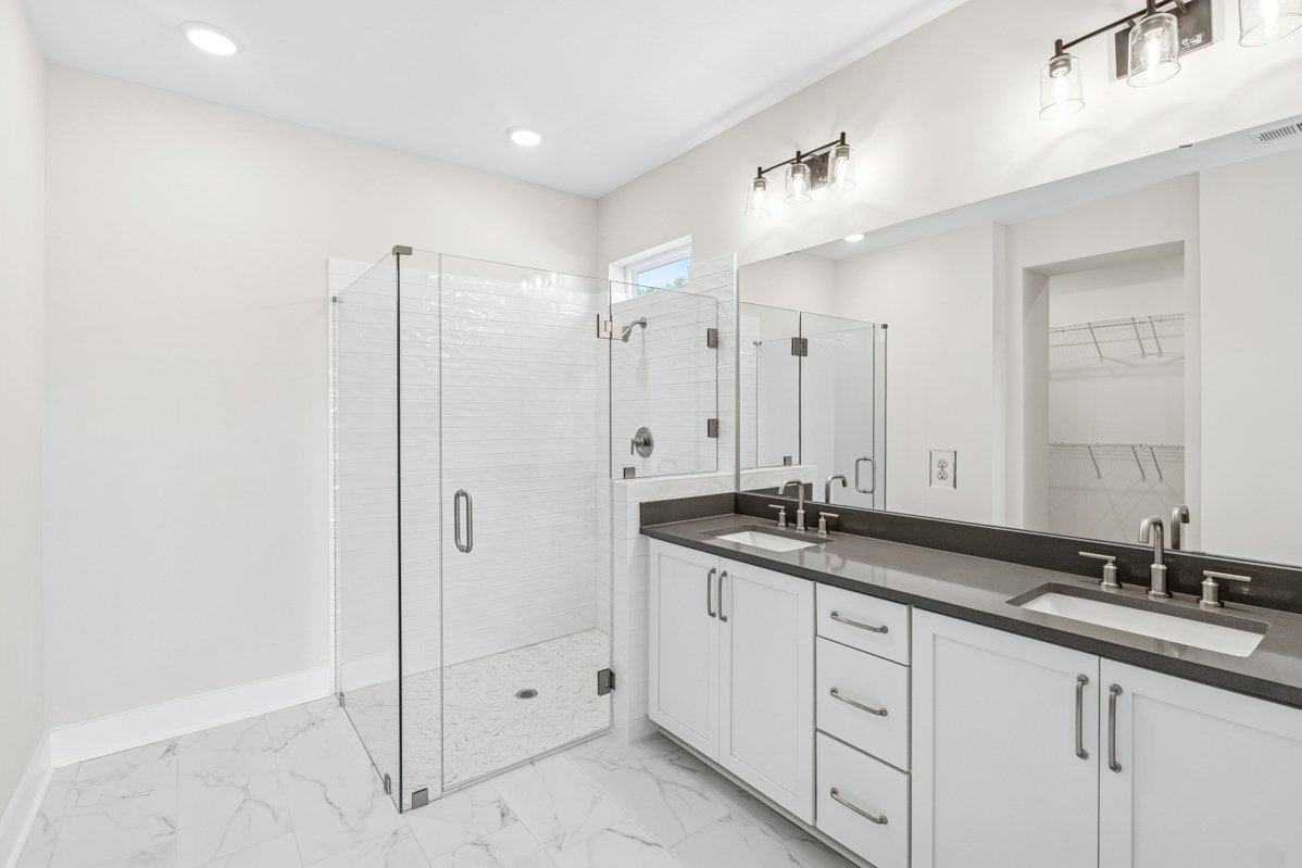 The Owner’s Suite is a retreat of its own, thoughtfully positioned for privacy and peace. A zero-entry Super Shower with frameless glass, stone countertops, and a spa-like layout transform daily routines into restorative rituals.