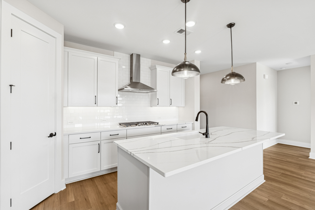 At the heart of the home, the kitchen is more than a functional space—it’s a place of gathering. Stone-toned cabinetry pairs with Et Bella quartz countertops, and the furniture-style wrapped island feels as handcrafted as it is purposeful. GE Profile appliances, a designer vent hood, and under-cabinet lighting elevate every moment, offering subtle luxury in all the right places.