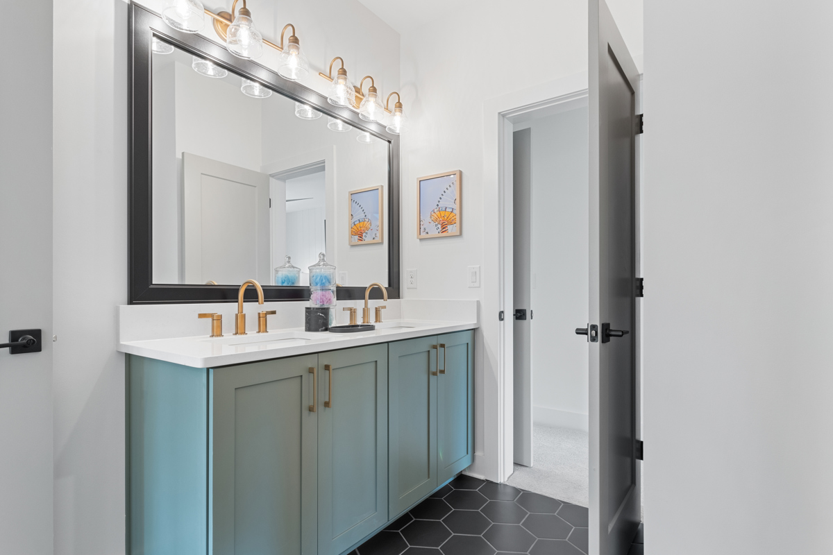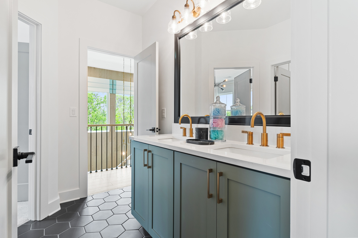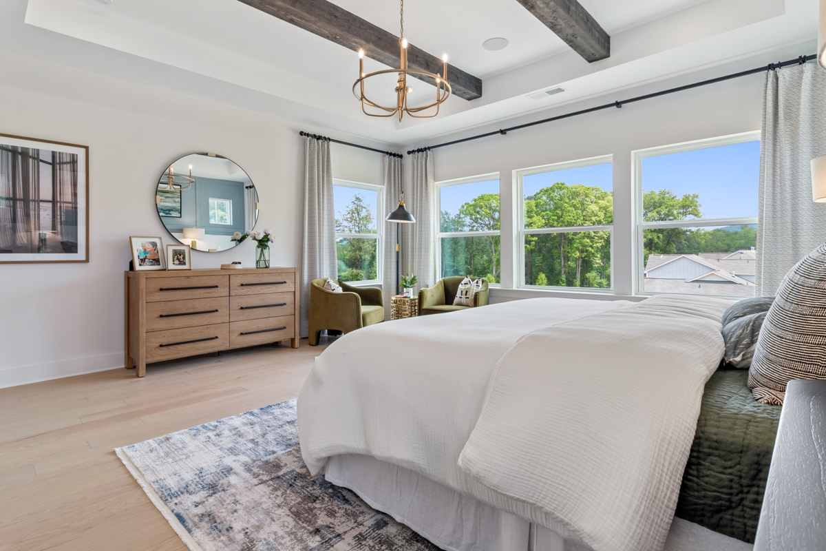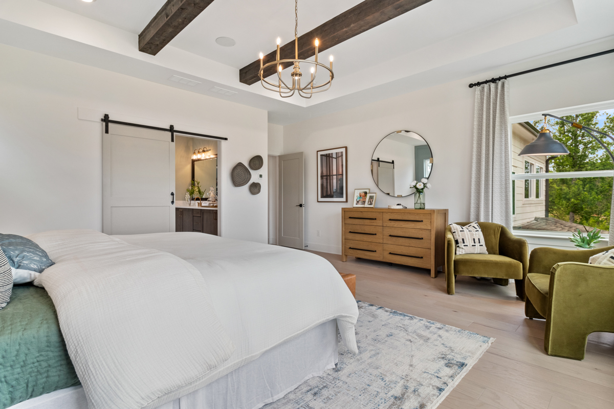 Two junior bedrooms with a jack and jill bath, a retreat for family game night, and a tranquil owner's retreat with exposed rustic beams and spa-like bath- complete this magnificent home!