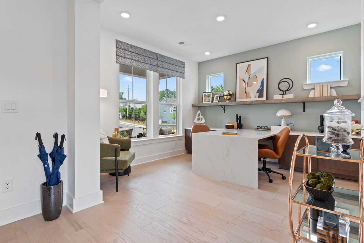 Havencroft, by award winning David Weekley Homes, is now open in Woodstock, Georgia. Offering lush, park-like landscaping- complete with outdoor lighting and custom stone hardscape, this desirable corner homesite is the idyllic setting for the expansive Wynstone's Atlanta debut. The dramatic two story vaulted family room offers an abundance of sunshine to brighten your day as the resident chef utilizes the adjoining kitchen complete with an oversized quartz island and massive walk-through Butler's pantry. Perfect for entertaining, the extended covered porch connects the dining and living spaces with 12 foot glass sliding doors. A spacious study and bedroom with full bath- boasting a walk in shower with opulent tile and brushed gold fixtures, complete the main level.