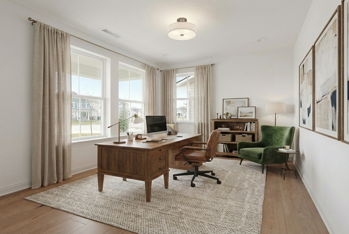 On the main level, the open layout flows beautifully and includes a dedicated office, ideal for working from home. The expansive kitchen is a chef’s dream, complete with upgraded cabinets, quartz countertops, a large island for gathering, and a walk-in pantry for ample storage. Upgraded finishes throughout the home showcase modern craftsmanship and thoughtful detail.