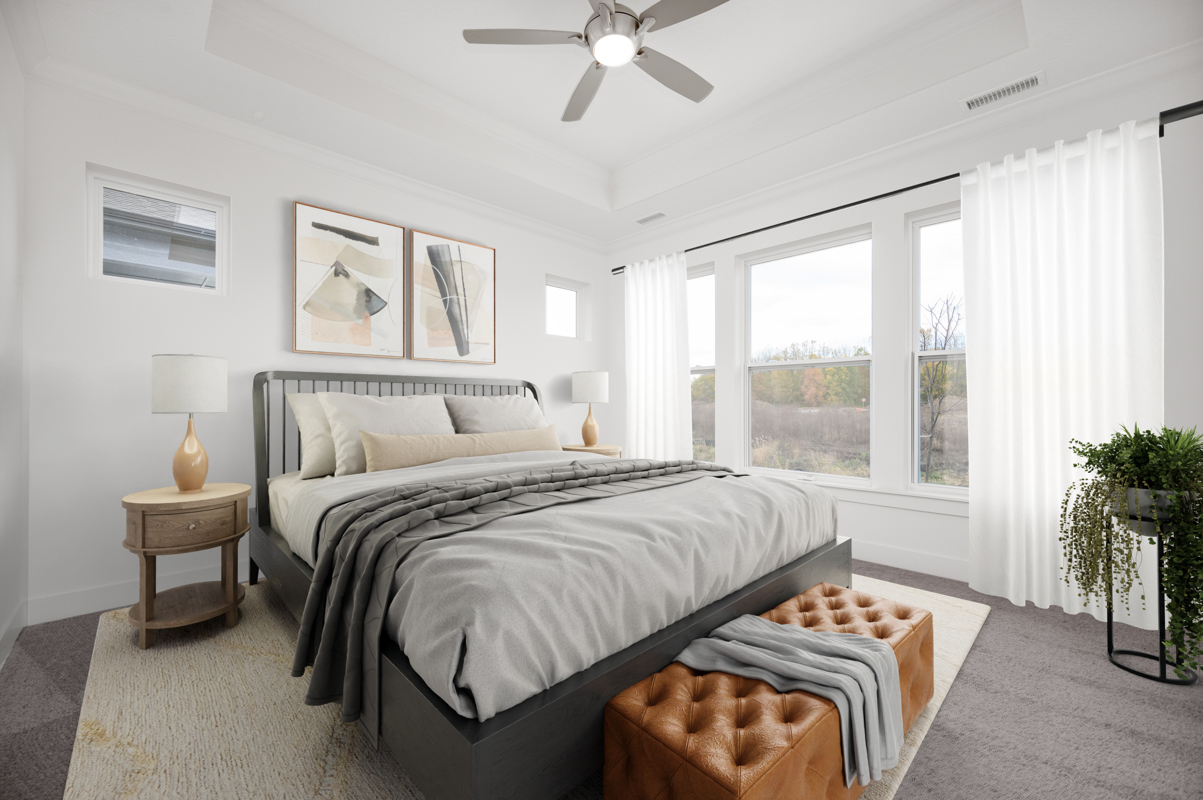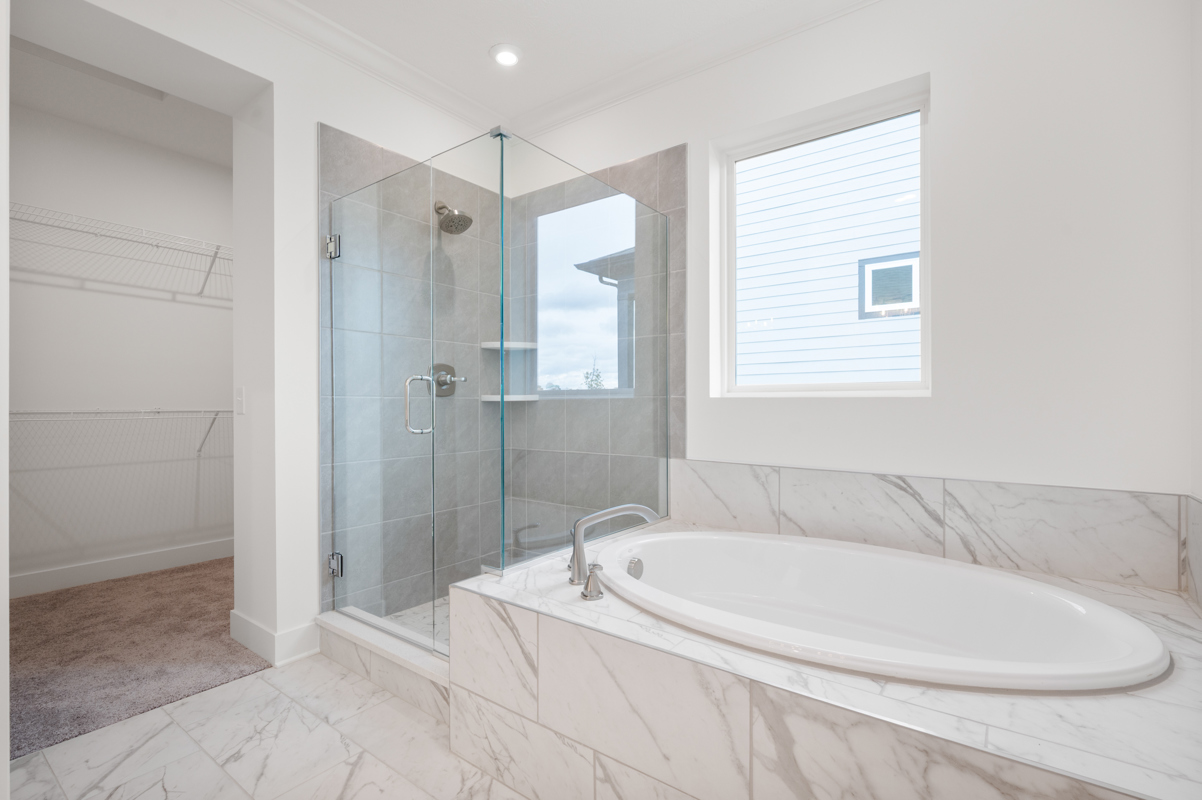 The main-level Owner’s Retreat offers a private escape with a tray ceiling, spacious garden tub, and separate shower for a spa-like experience. Elegant crown molding accents the main living areas, adding an extra touch of sophistication and charm.