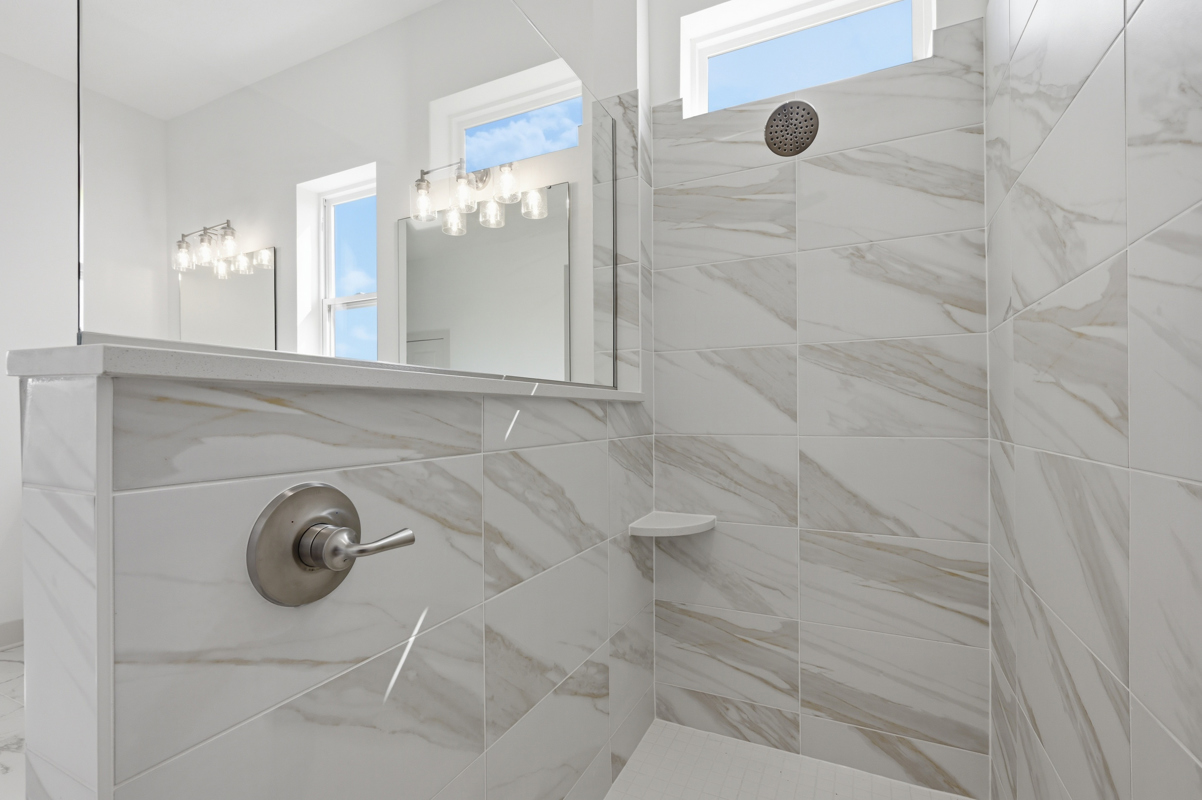 A private guest suite is conveniently located on the main level, while the secluded primary suite at the back of the home offers a tranquil retreat. The primary bath includes luxurious quartz finishes, double vanities, a walk-in shower, and an expansive walk-in closet. A dedicated office or study provides the perfect workspace or quiet reading area.