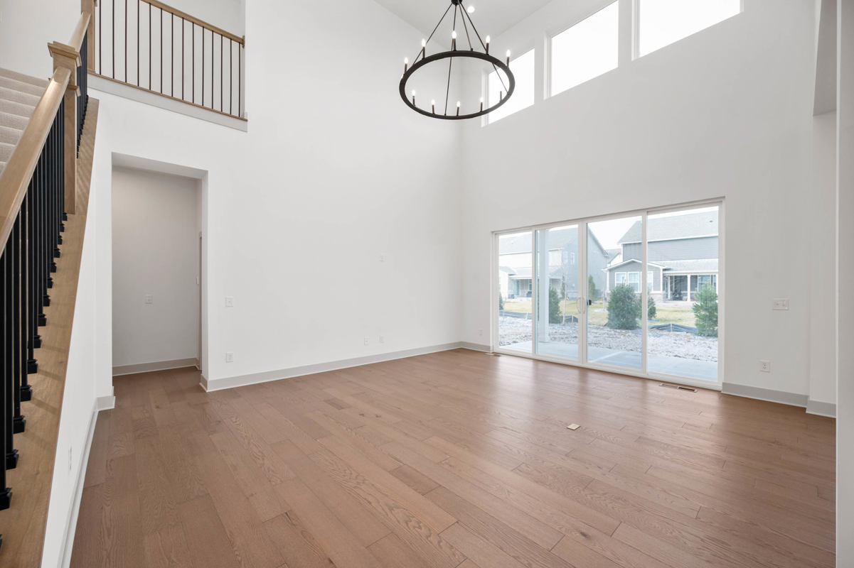 A private study with elegant French doors offers the perfect space for working from home or quiet focus. The two-story family room is filled with natural light, thanks to 12-foot sliding glass doors that open to an extended covered rear porch—creating a seamless connection between indoor comfort and outdoor living.
