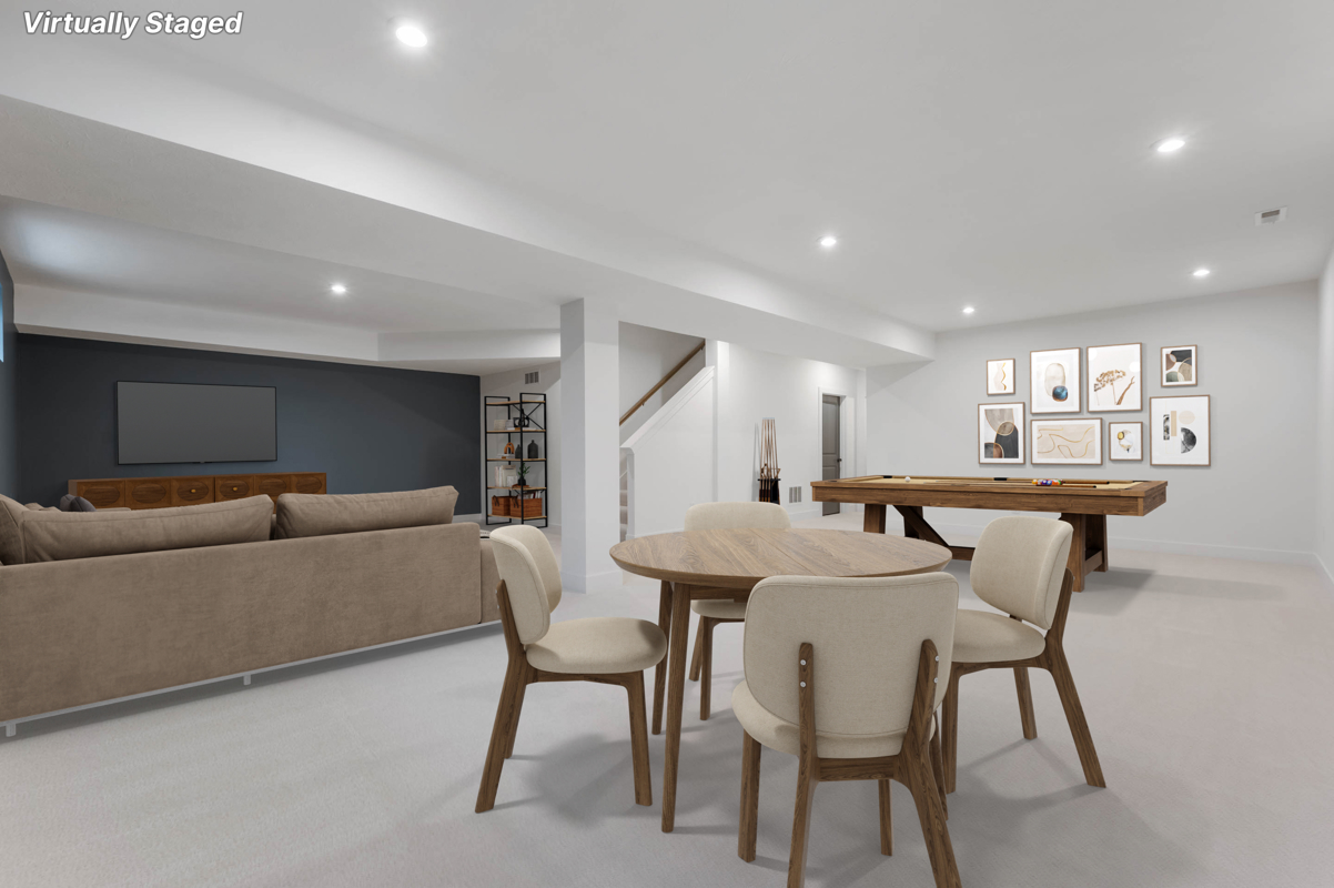 The finished basement expands your living space even further with a large game room and additional storage area, making it ideal for entertaining, hobbies, or accommodating guests.