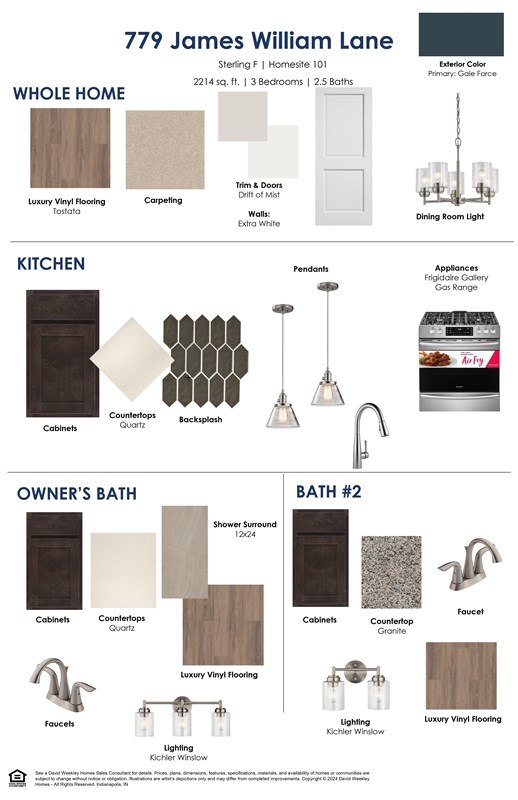 Harvest Trail presents the Sterling on 779 James William Lane, where luxurious finishes tie together with a layout that makes sense for every day life. The floorplan includes three bedrooms, two and a half bathrooms, a main floor study, and an upstairs retreat space.