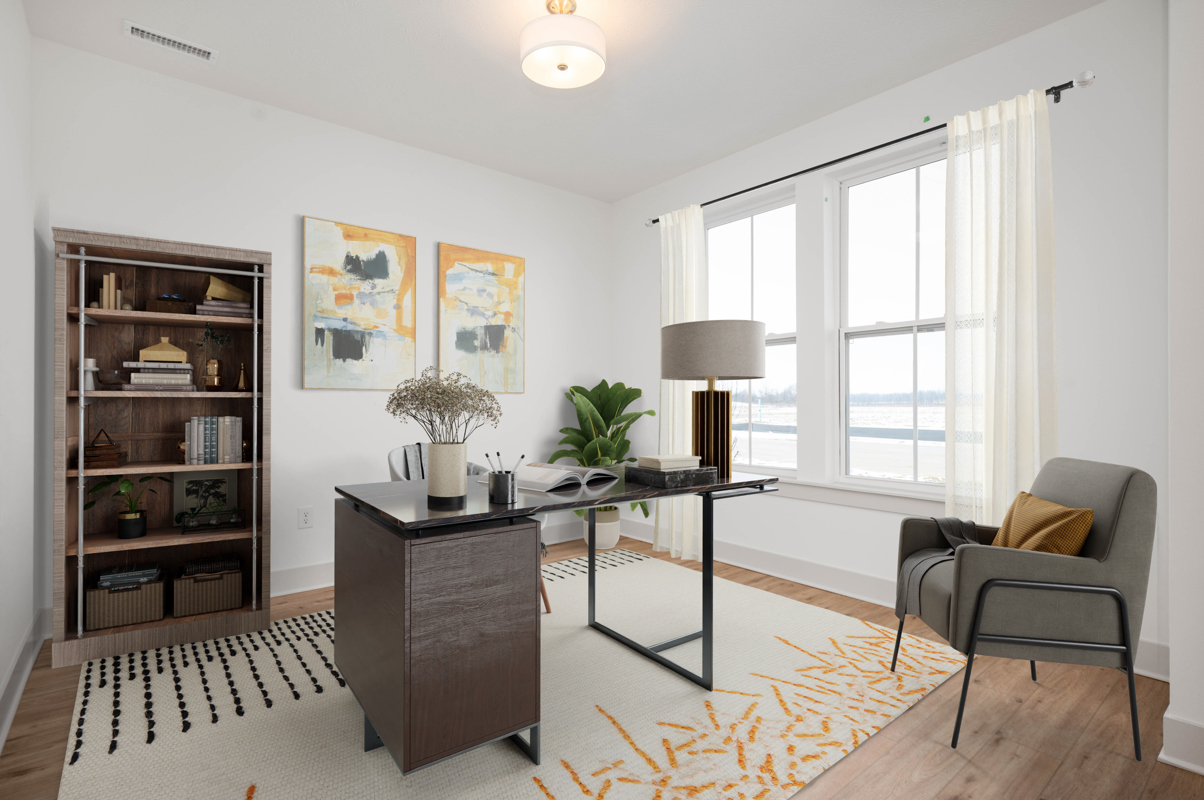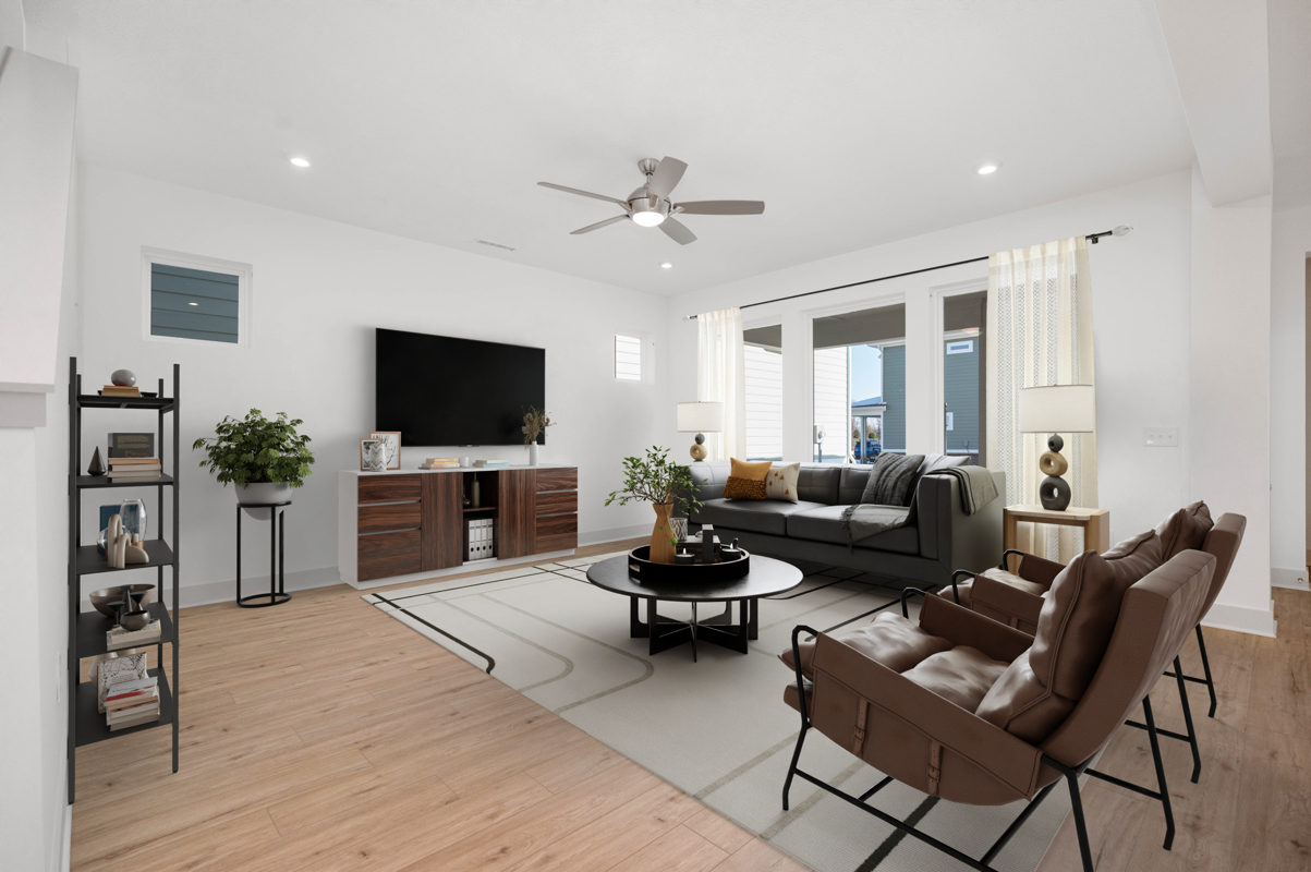 The Littleton is a two-story home with 3 bedrooms and 2.5 baths, designed with everyday ease in mind. A wide entryway welcomes you with space to breathe, while a front-facing study provides privacy and natural light, perfect for a quiet office or reading room.