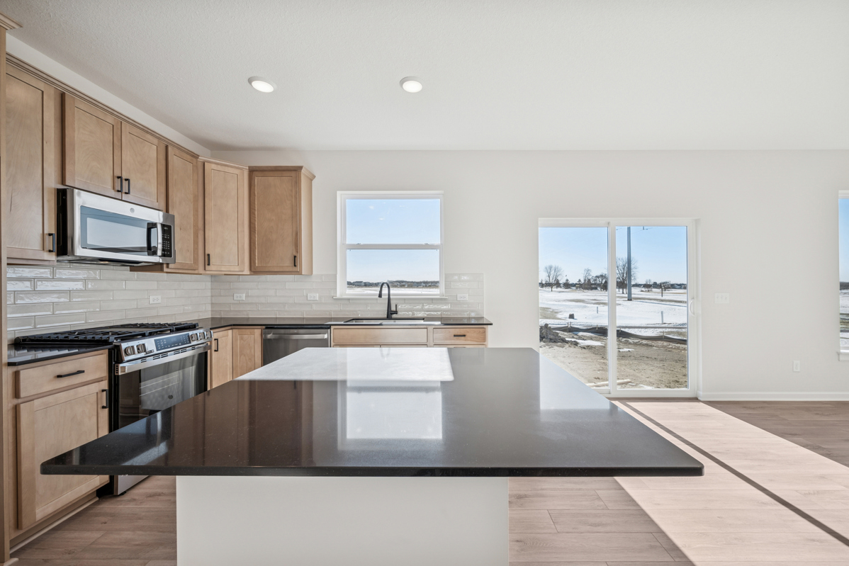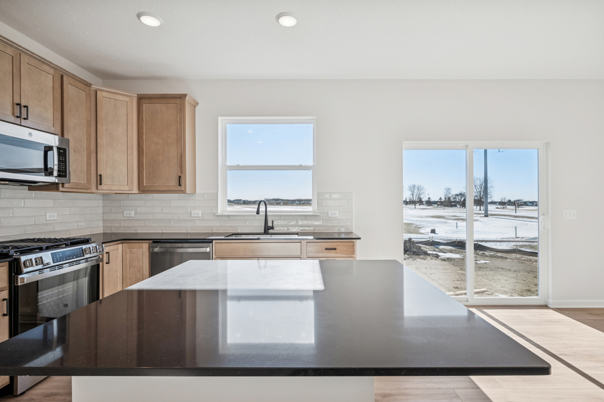The main floor office is perfect for remote work or creative endeavors. Natural light floods the home from the southern exposure through abundant windows, creating a warm and inviting atmosphere throughout. At the heart of the home lies the beautiful kitchen, designed for both functionality and entertaining. With open sight lines and ample counter space, its the perfect gathering spot for family and friends.