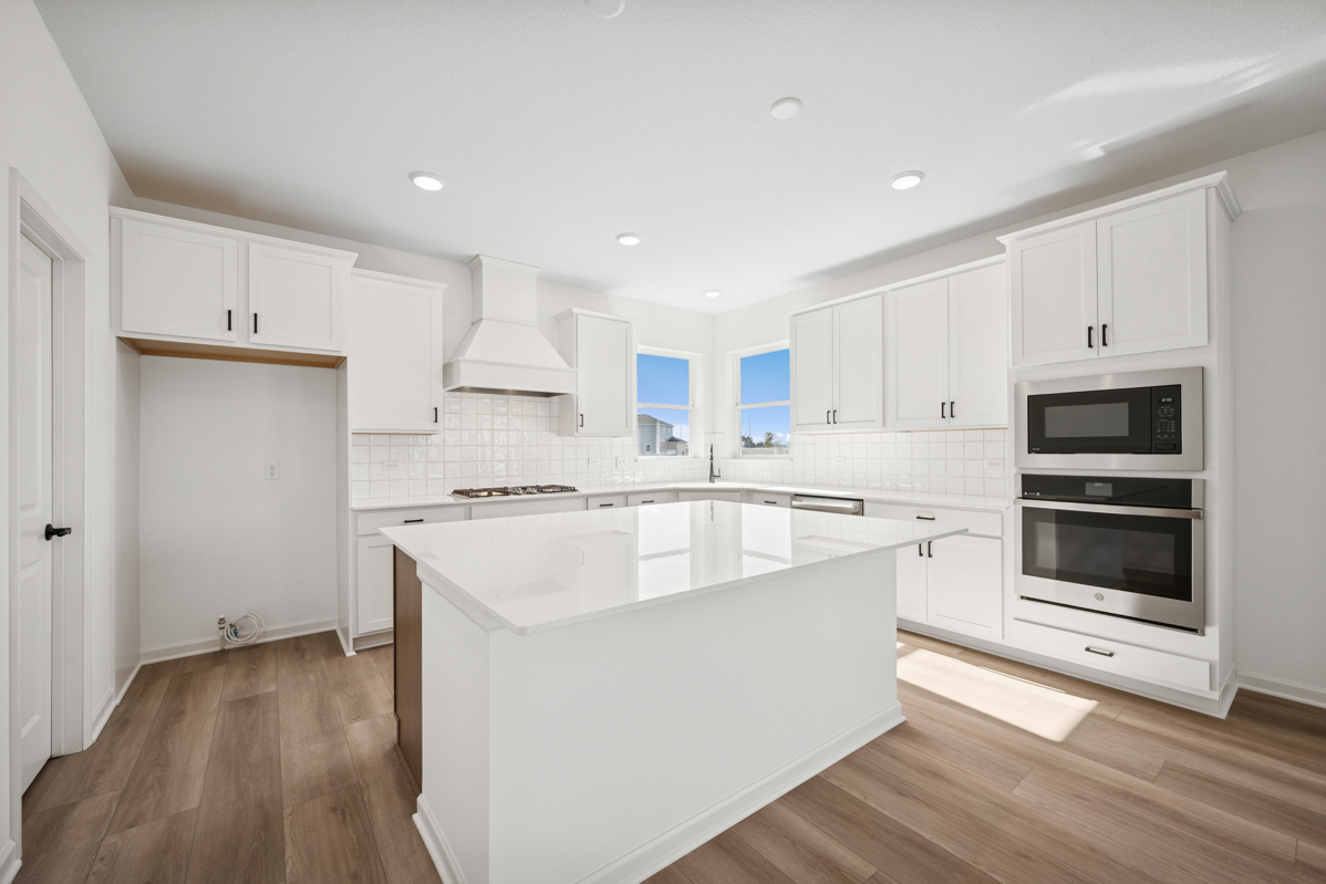 Welcome to your new home in Brayburn Trails! The Erie is a home sure to impress in many ways – from its stunning curb appeal to its super functional layout, this is a home that checks all the boxes. The kitchen of the Erie is the heart of the layout, with luxurious finishes and 36 different cabinets, this is a chef’s dream layout. You will love the massive center island, the over-sized walk-in pantry, and the corner sink that provides views of the back yard out of the large corner windows.
