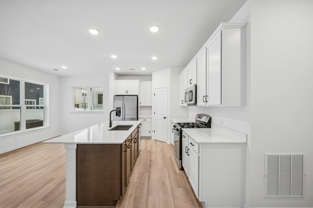 Create culinary delights in the contemporary kitchen, complete with a central island overlooking the open family and dining areas — perfect for both everyday living and entertaining.
