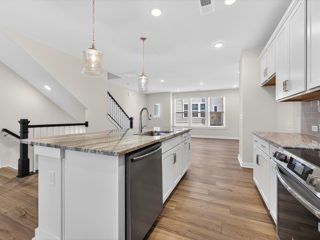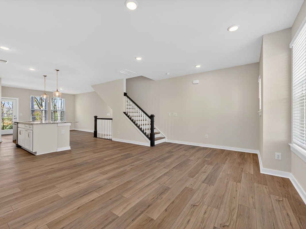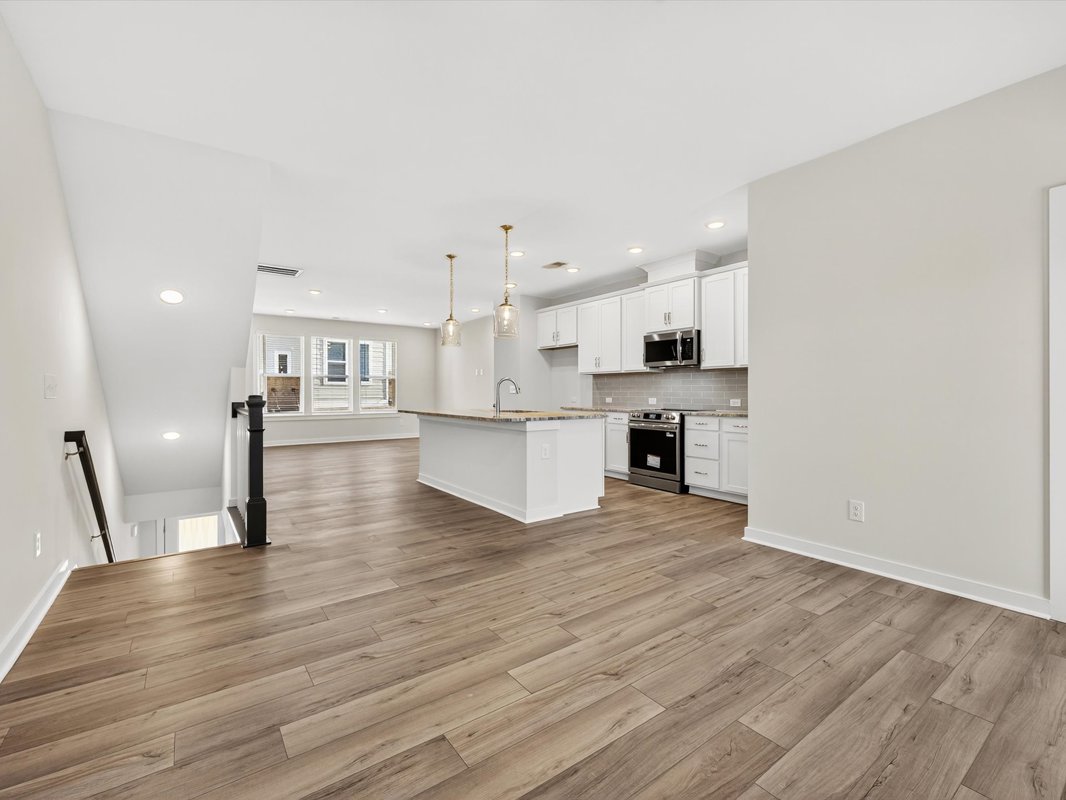 Ascend to the main level, where the open-concept layout seamlessly blends the kitchen, dining, and living spaces, creating a welcoming area for meals, gatherings, or relaxing nights in.