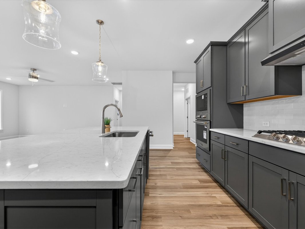 Step inside to a bright, open floor plan that seamlessly blends elegance and function. The heart of the home is the gourmet kitchen, featuring top-of-the-line Frigidaire appliances, including a sleek gas cooktop and built-in wall oven—perfect for everything from casual breakfasts to holiday dinners.