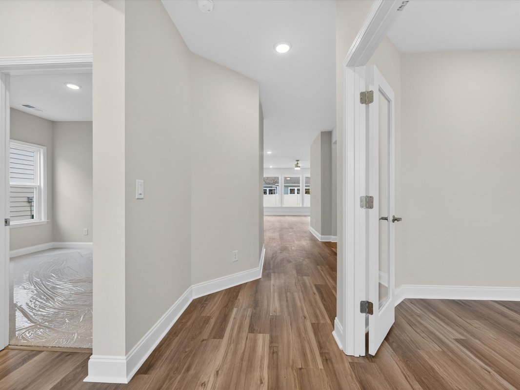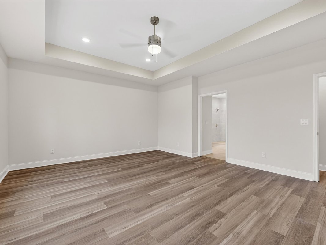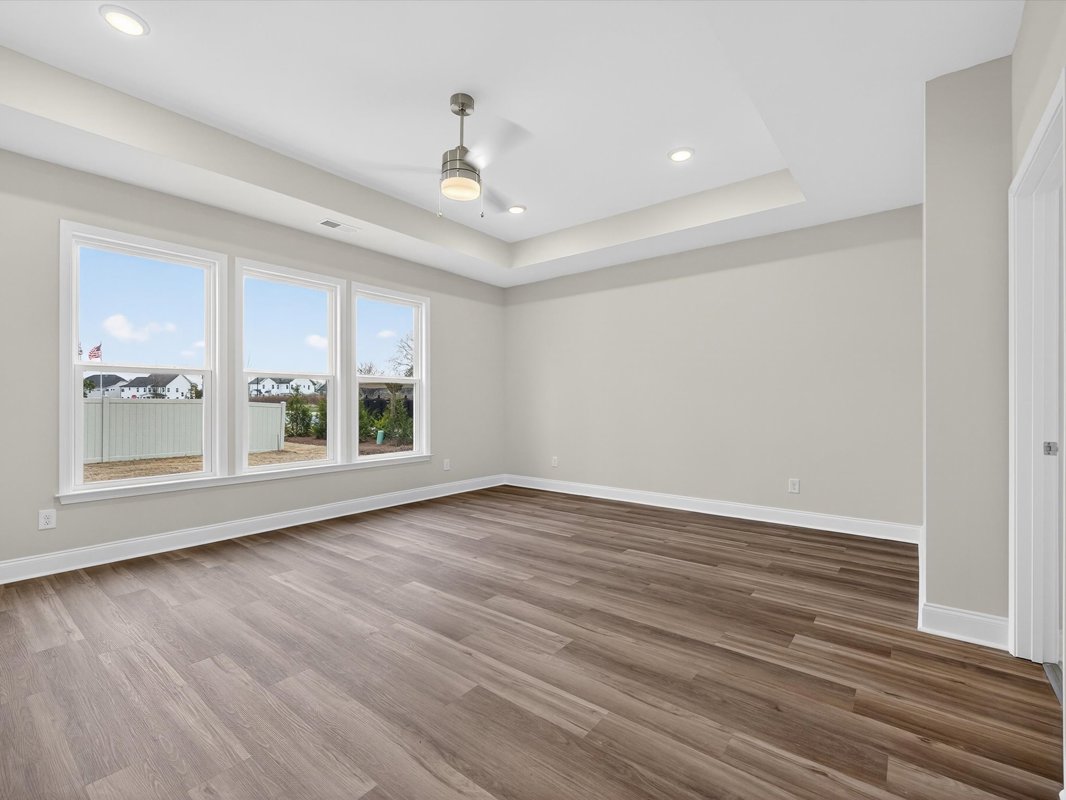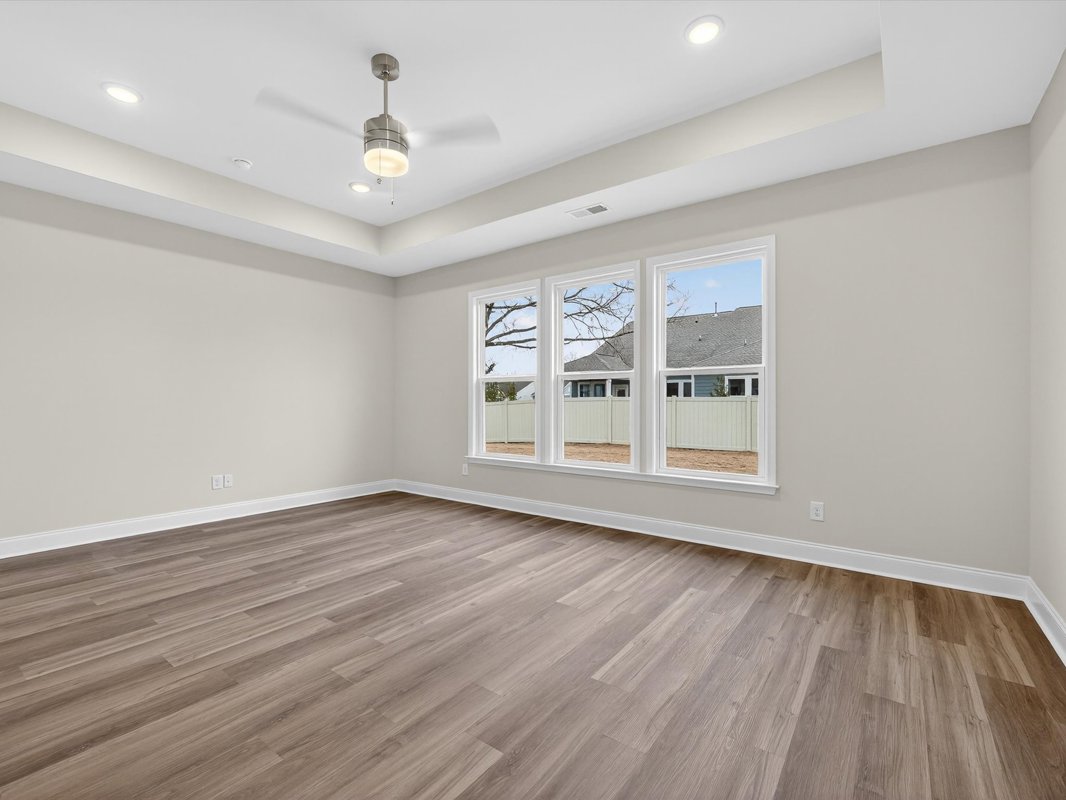 The tray ceiling in the primary bedroom adds an elegant touch, while the zero-entry shower with built-in bench in the en-suite bath ensures comfort and accessibility, now and in the future. With two additional bedrooms, there's space for guests, a home office, or hobby room—whatever fits your lifestyle.