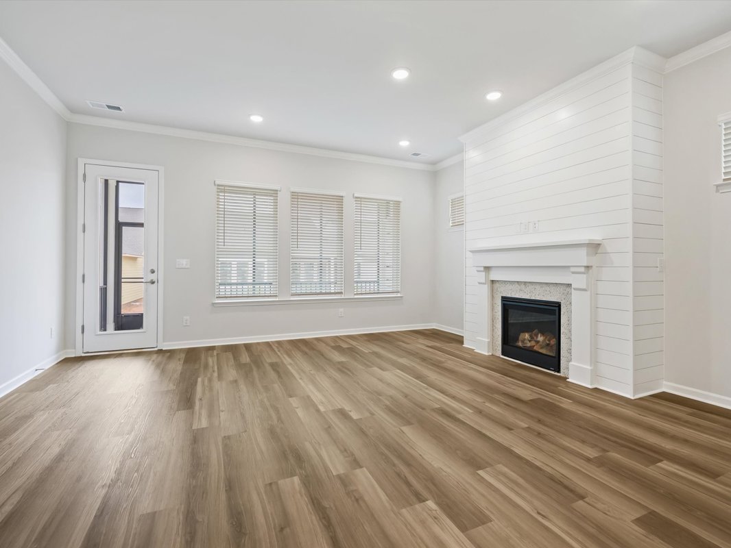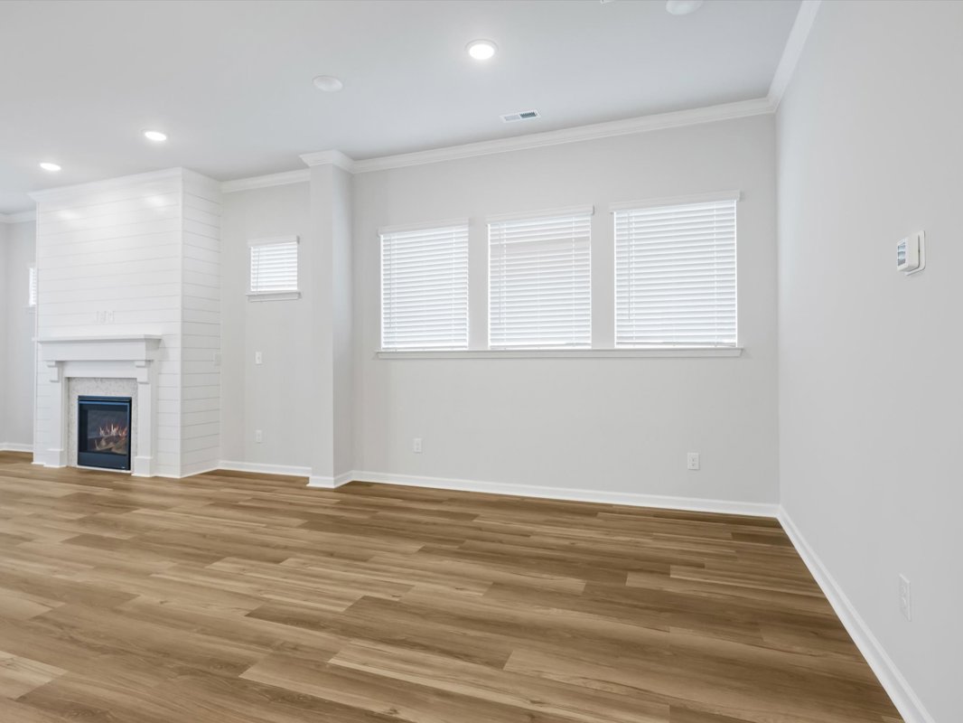 The open-concept floor plan is ideal for everyday living and entertaining, featuring tile and luxury vinyl plank flooring throughout for a cohesive and durable design. The well-appointed kitchen includes Quartz countertops, a gas cooktop, wall oven, and refrigerator, and opens seamlessly to the main living area with a cozy fireplace, creating a warm and inviting space.