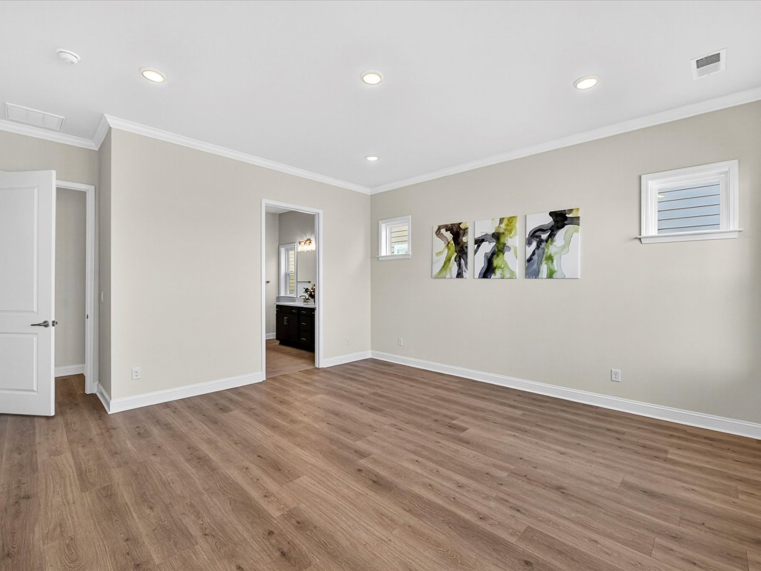 A study with French doors provides the perfect space for work, hobbies, or quiet retreat. The Owner’s Retreat offers a tranquil escape with dual walk-in closets and a spa-like Owner’s Bath, making it the ideal place to begin and end each day.