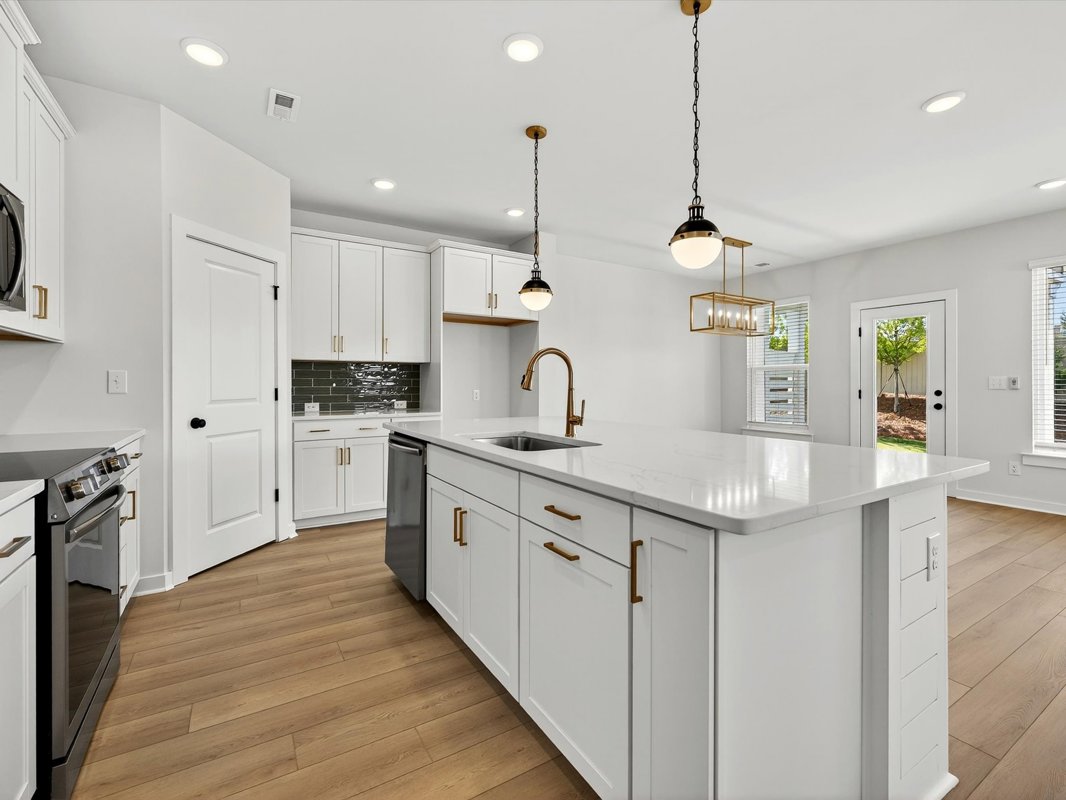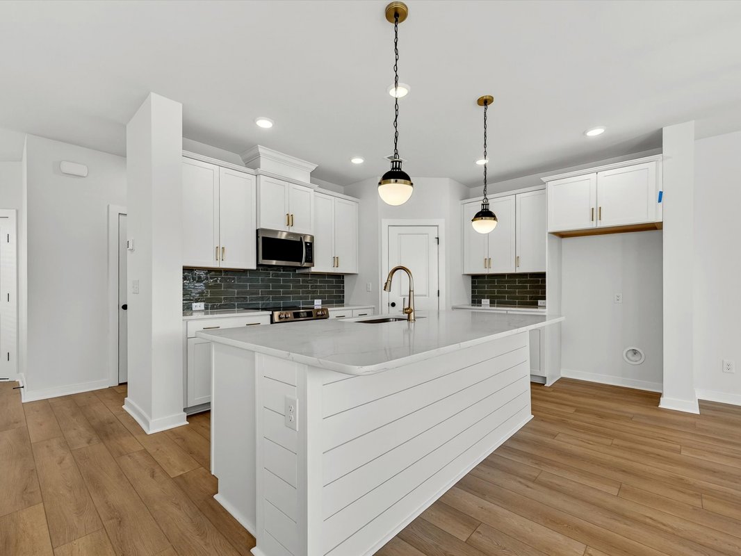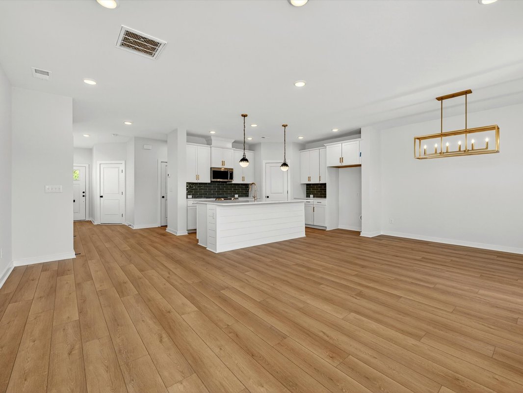 Step inside and experience open-concept living at its finest. The gourmet kitchen is the centerpiece of the home, featuring luxurious quartz countertops, an oversized island, abundant cabinetry, and designer finishes—a perfect blend of style and function for everyday living or entertaining.