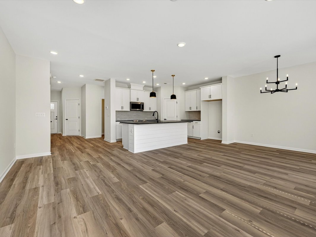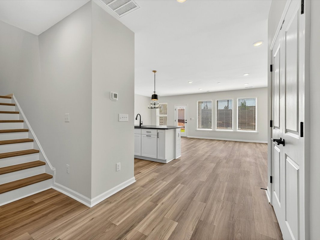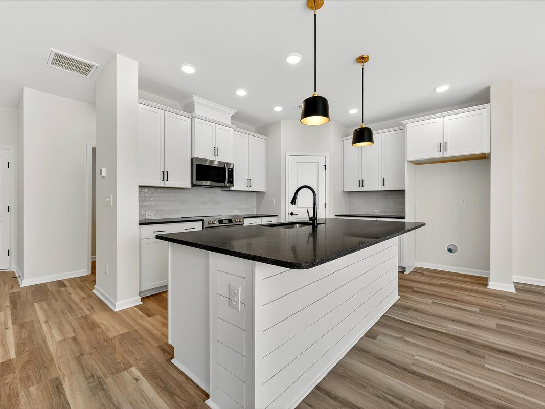 Step inside to discover light-filled, open spaces that combine function and sophistication. The gourmet kitchen is the centerpiece of the home, featuring elevated, curated countertops, striking shiplap accents, an oversized island, and abundant cabinetry—creating a space as stylish as it is practical. The LVP stair treads, coordinated with the main-level flooring, bring continuity and warmth throughout the home.