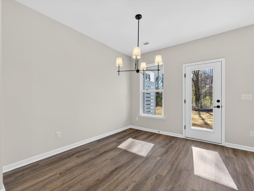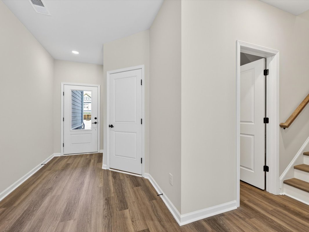 Oversized windows throughout the home bathe the space in natural light. Step outside and enjoy the privacy of your wooded backyard with nothing behind you but trees! Relax and unwind on the covered rear porch knowing the included lawn maintenance will free you up to spend your time on the things you love.