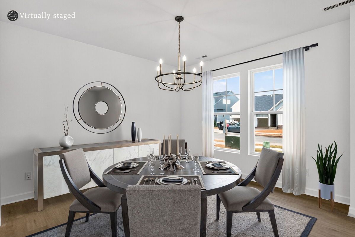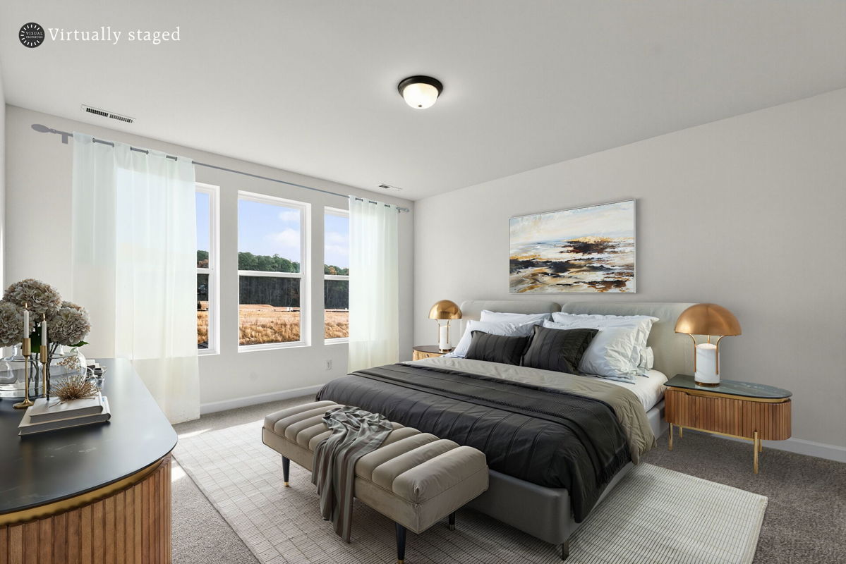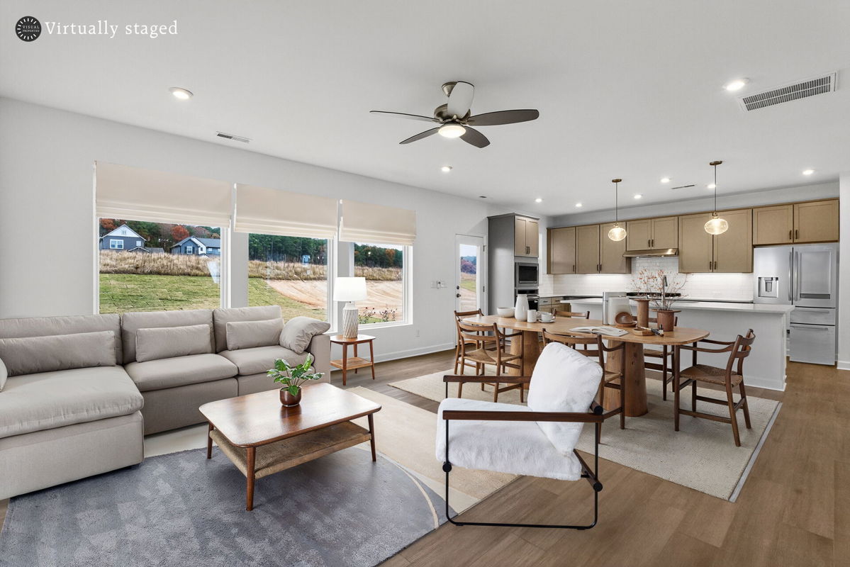 Designed for both entertaining and everyday living, this move-in ready Ballentine at Serenity showcases a spacious open-concept layout and thoughtful upgrades throughout. A first-floor guest suite provides comfort and privacy, while the gourmet kitchen features quartz countertops, built-in appliances, and an oversized island that flows seamlessly into the dining and family areas. Step outside to a covered rear porch, perfect for relaxing or entertaining outdoors.
